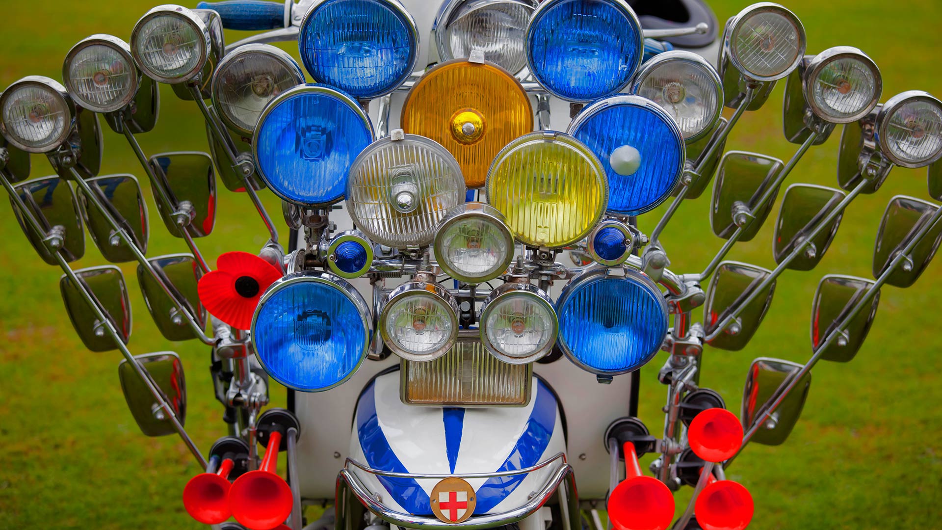 A scooter adorned with multiple mirrors, lights, and air horns (© stocknshares/Getty Images) - Bing Wallpaper on December 7, 2019
