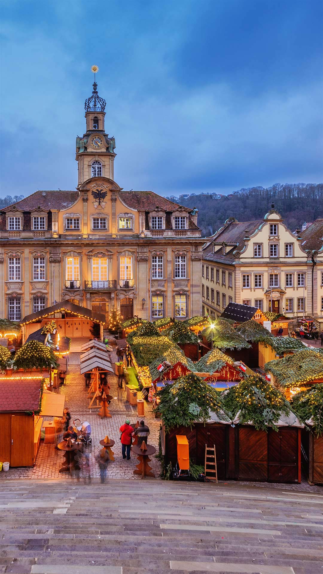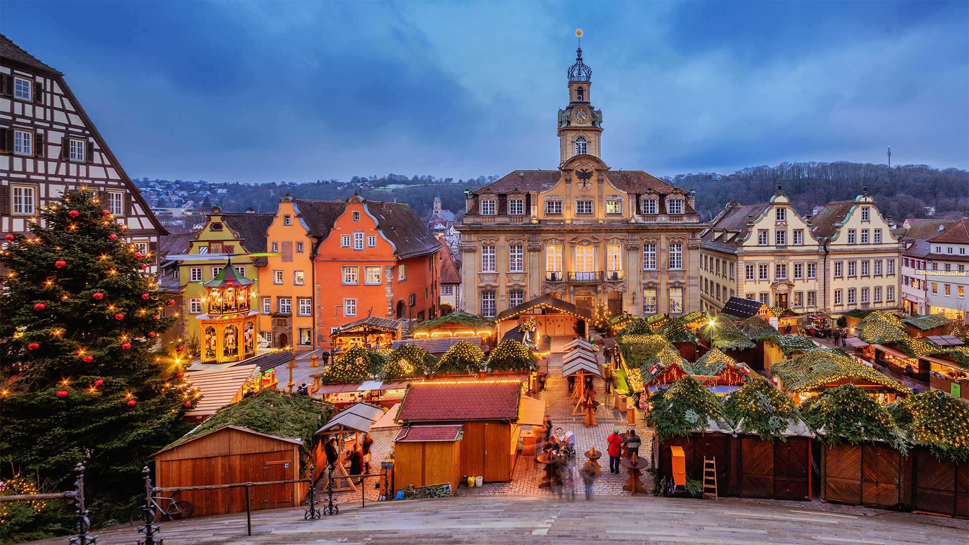 Annual Schwäbisch Hall Weihnachtsmarkt in the market square, Baden-Württemberg, Germany (© sack/Getty Images Plus) - Bing Wallpaper on December 17, 2019