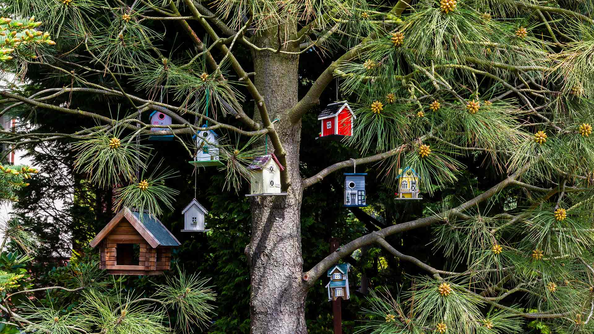 Birdhouses hanging in a tree (© Westend61/Getty Images) - Bing Wallpaper on December 6, 2020