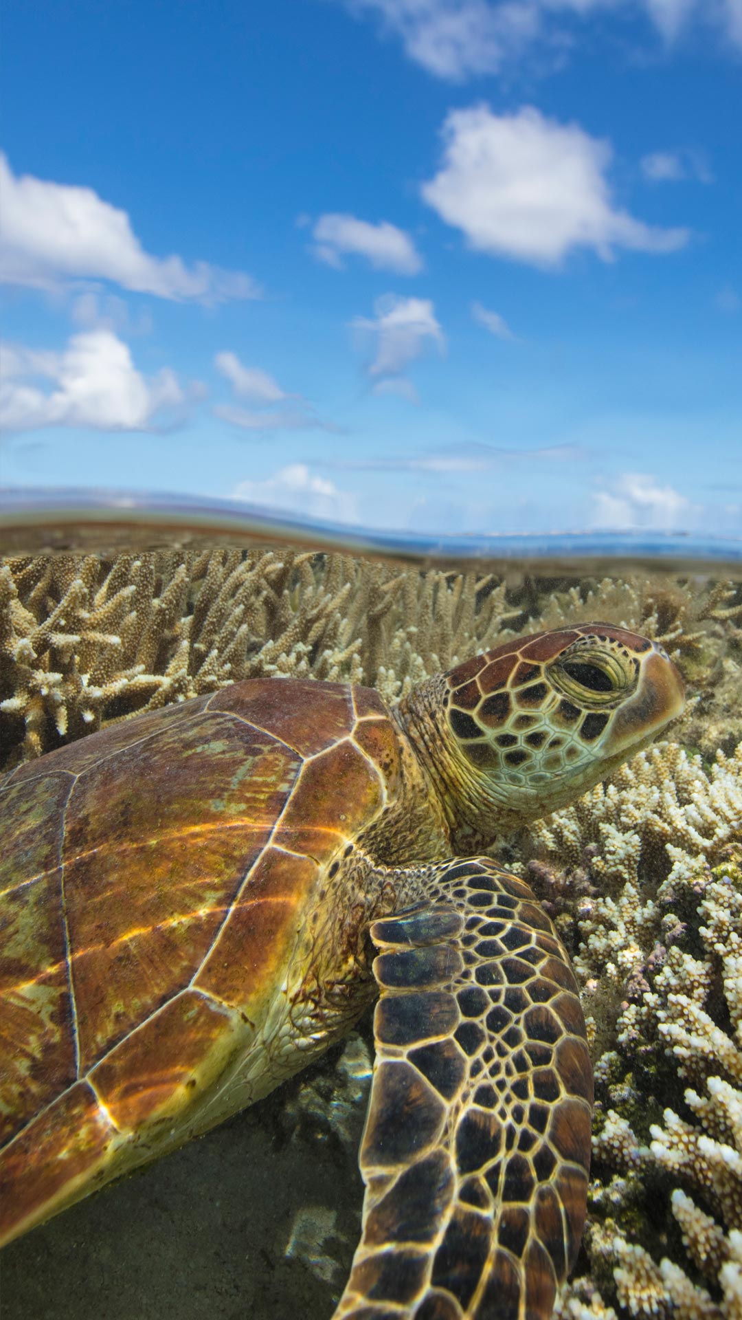 Green turtle swimming over a coral reef, Lady Elliot Island, Queensland (© seanscott/Getty Images) - Bing Wallpaper on December 29, 2020