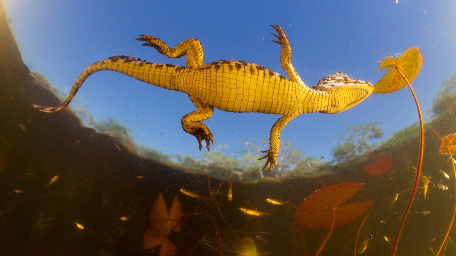 Jacaré (Caiman yacare) bebê visto de baixo (© Luciano Candisani/Minden Pictures) - Bing Wallpaper on January 8, 2025