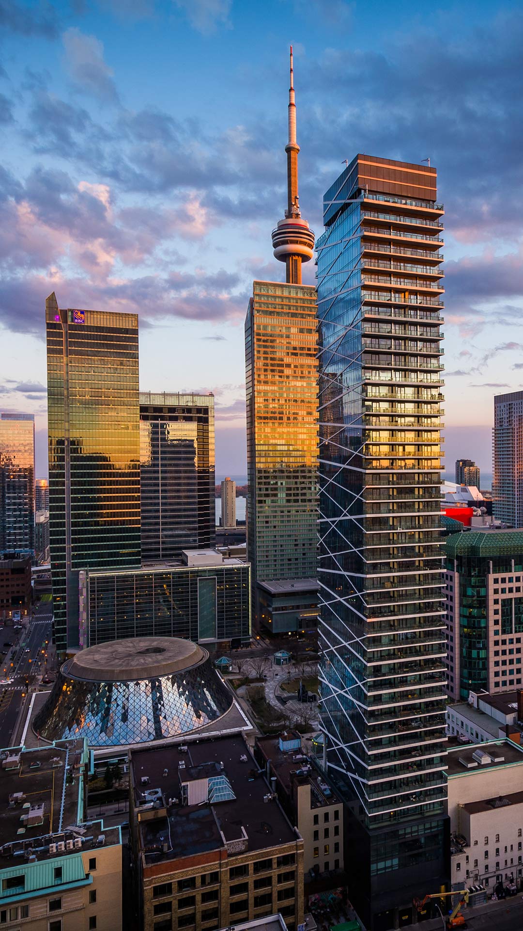 View of modern buildings at sunset in downtown Toronto (© Jon Bilous/Shutterstock) - Bing Wallpaper on April 26, 2019