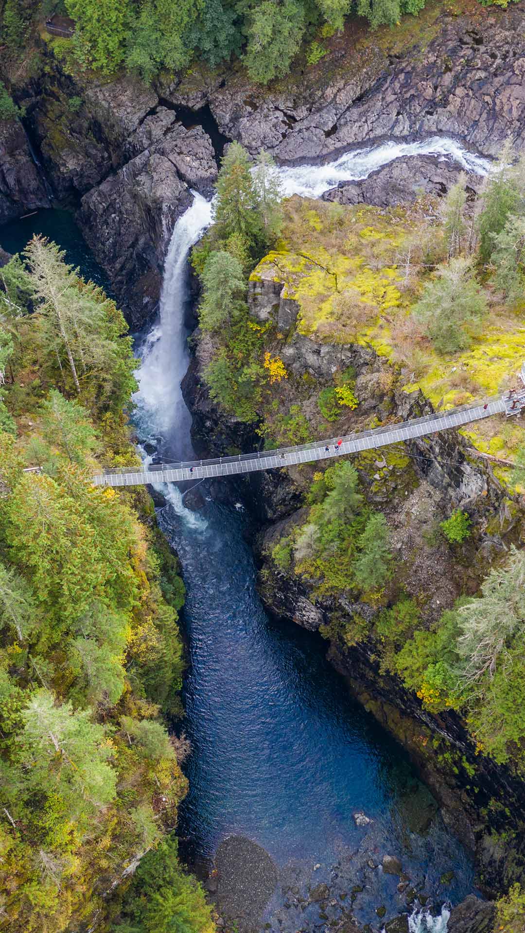 Aerial view of Elk Falls suspension bridge on Vancouver Island (© Ink Drop/Alamy Stock Photo) - Bing Wallpaper on July 28, 2019
