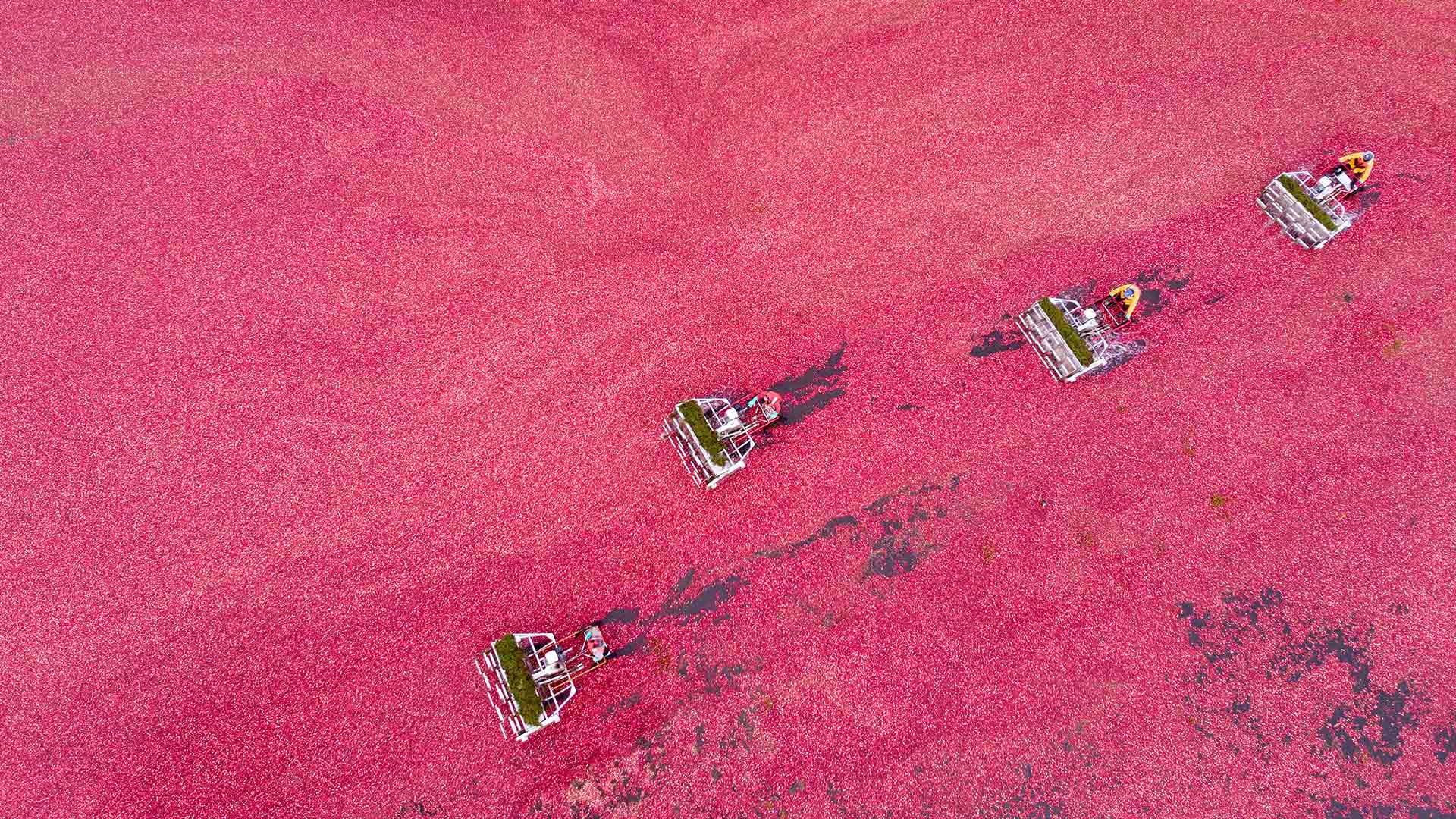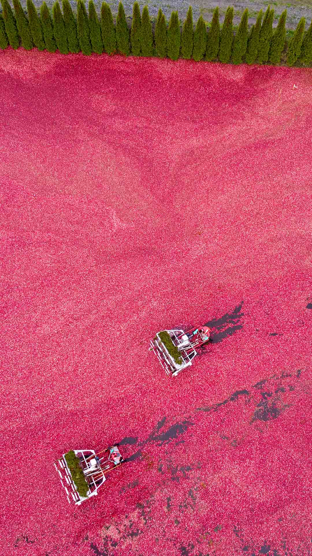 Cranberry harvest seen from a drone, Vancouver (© Grant Faint/Getty Images) - Bing Wallpaper on September 17, 2020