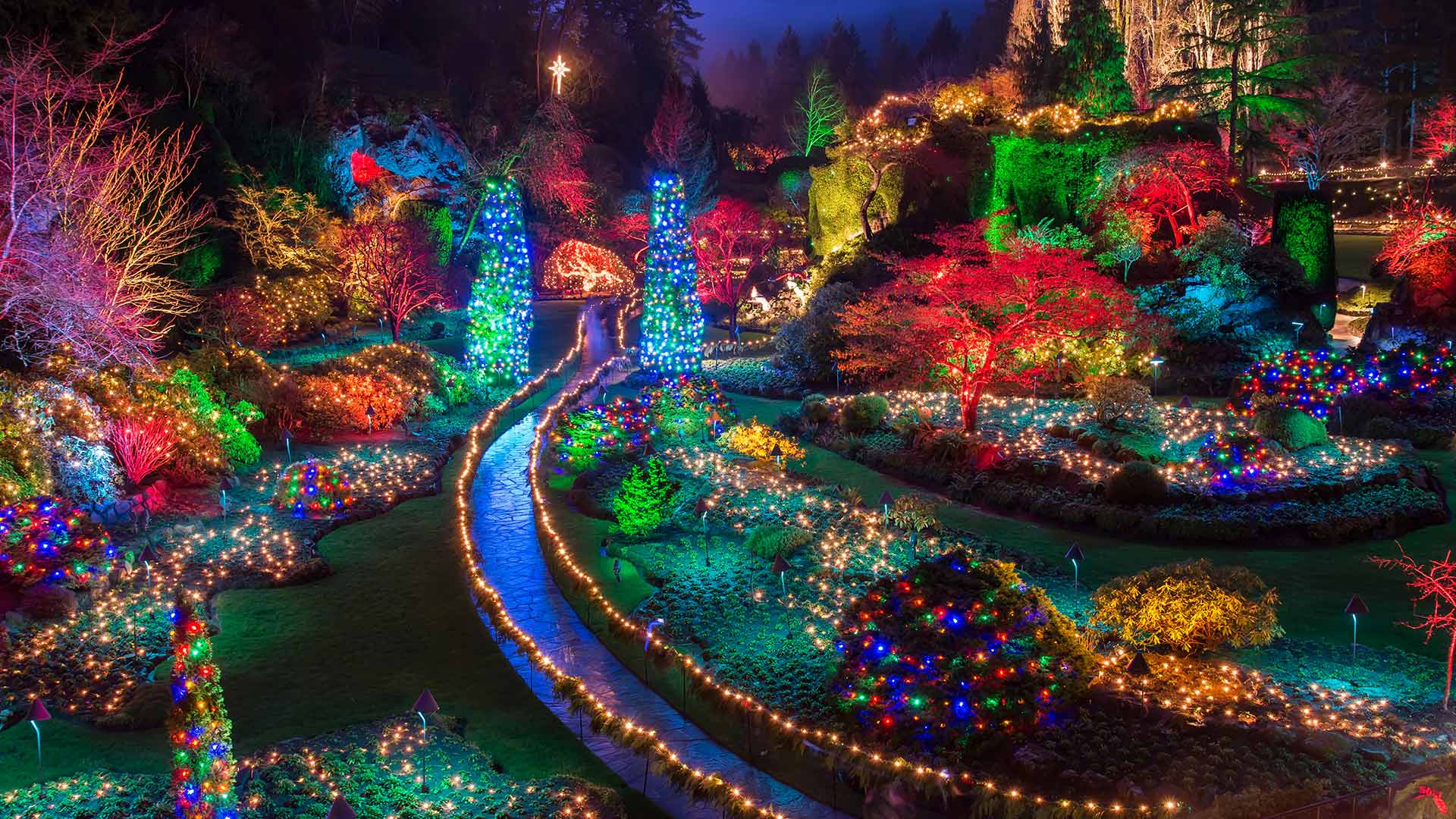 Christmas lights at the Butchart Gardens in British Columbia (© James Wheeler/Getty Images) - Bing Wallpaper on December 7, 2020