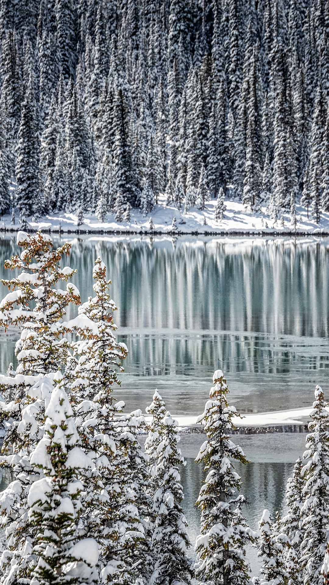 A frozen lake in Banff National Park (© RuslanKaln/Getty Images) - Bing Wallpaper on February 19, 2022