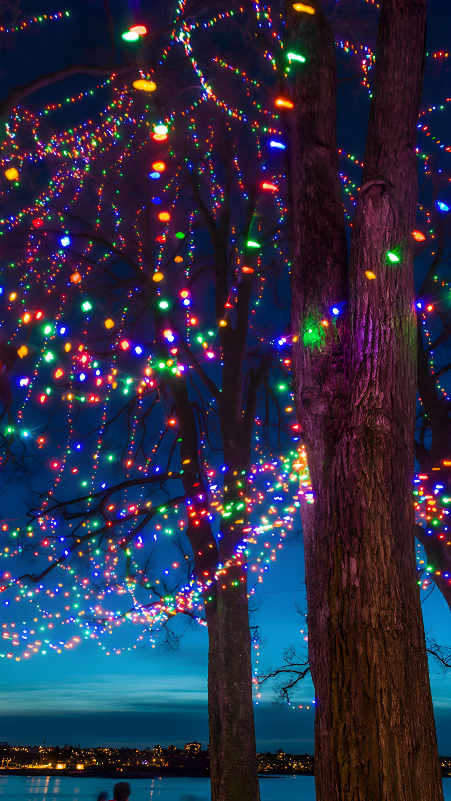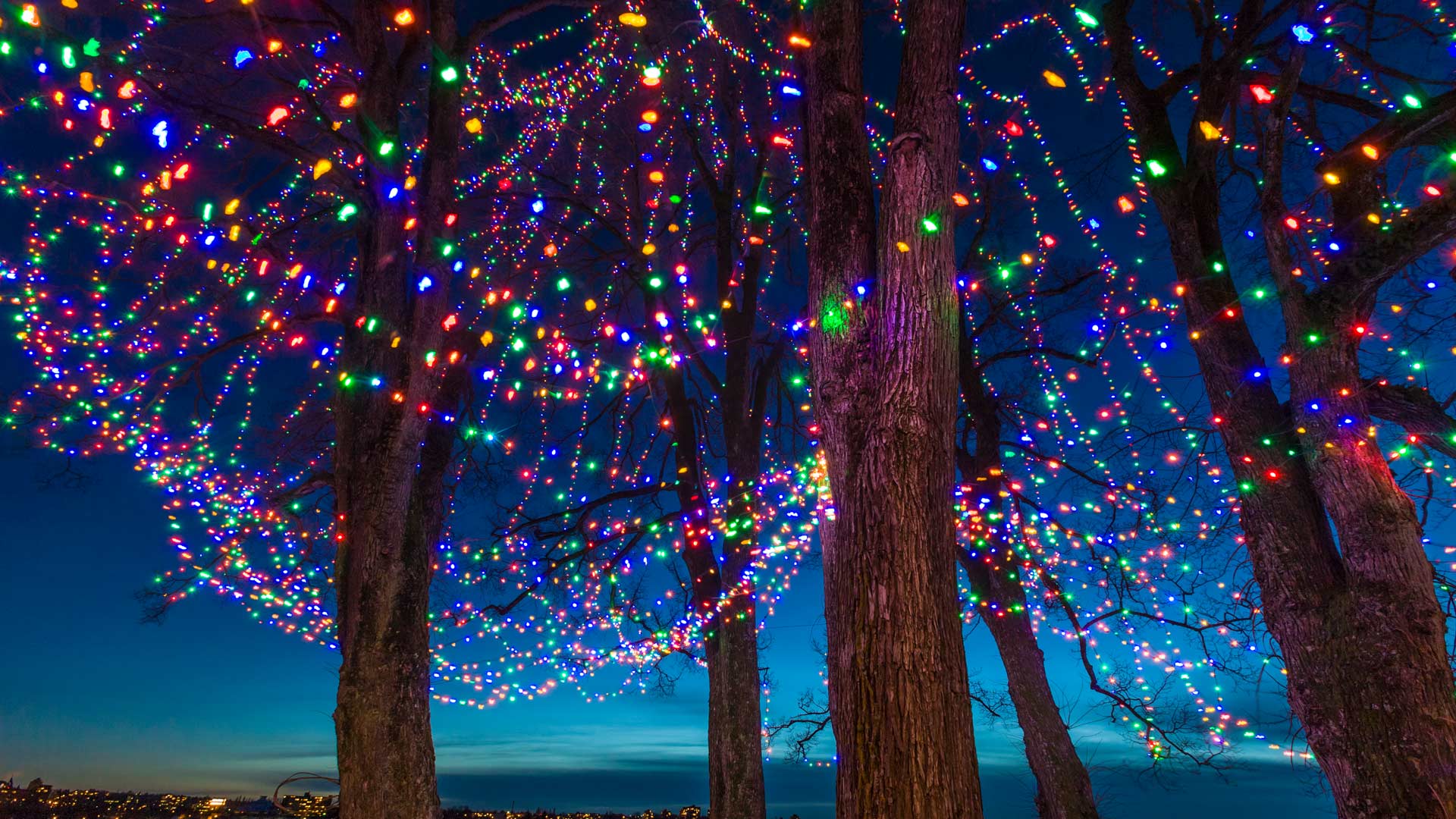 Christmas lights on trees at dusk, Vancouver, Canada (© Stuart Dee/Getty Images) - Bing Wallpaper on December 26, 2023