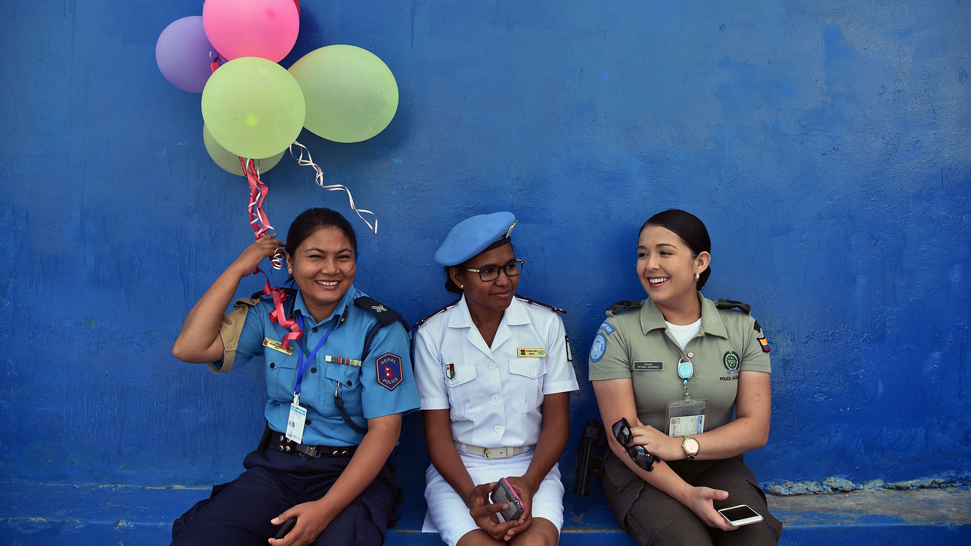 出席2016年国际妇女节庆祝仪式的联合国海地稳定特派团的女警察 (© Hector Retamal/AFP/Getty Images) - Bing Wallpaper on March 7, 2019
