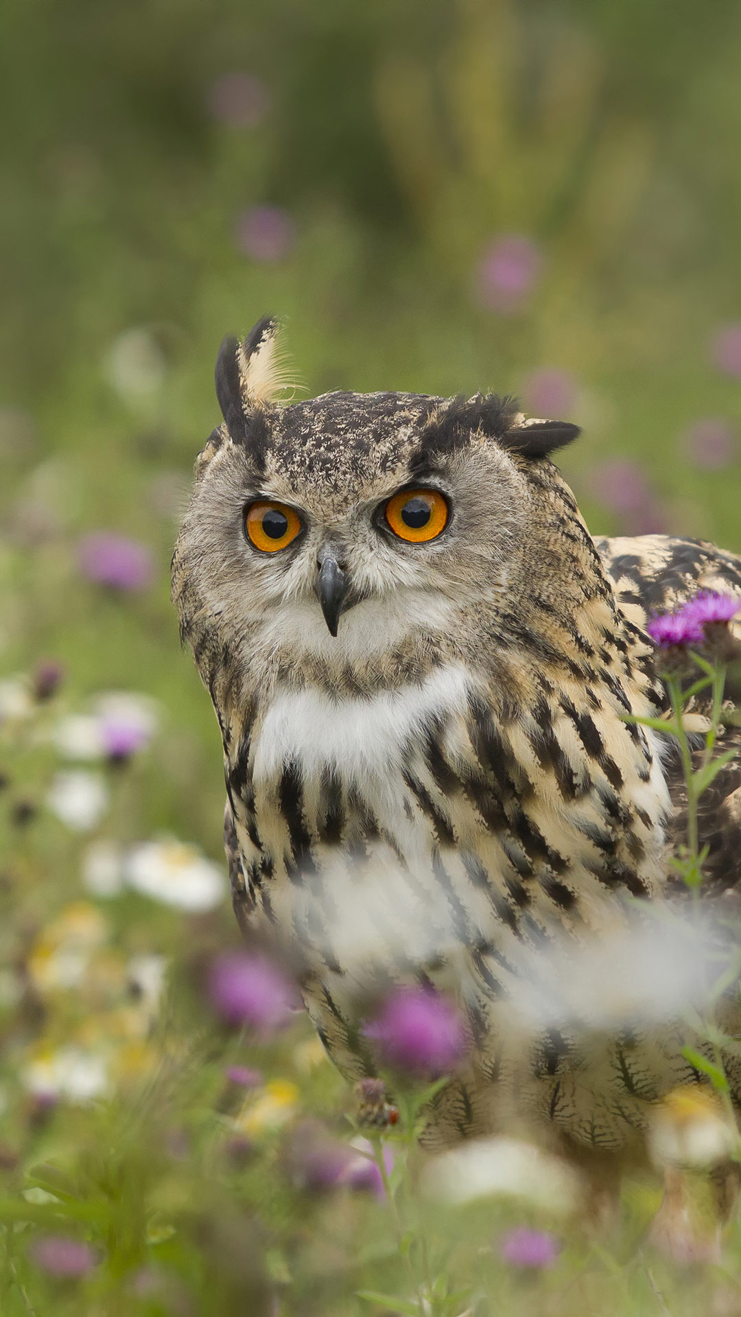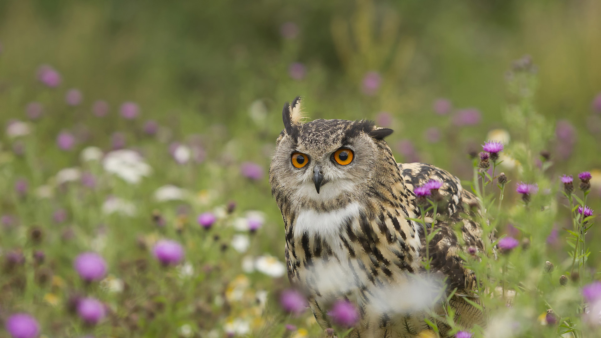 野花草甸上的一只欧亚雕鸮,德国莱茵兰-普法尔茨 (© Rosl Roessner/Minden Pictures) - Bing Wallpaper on August 2, 2019