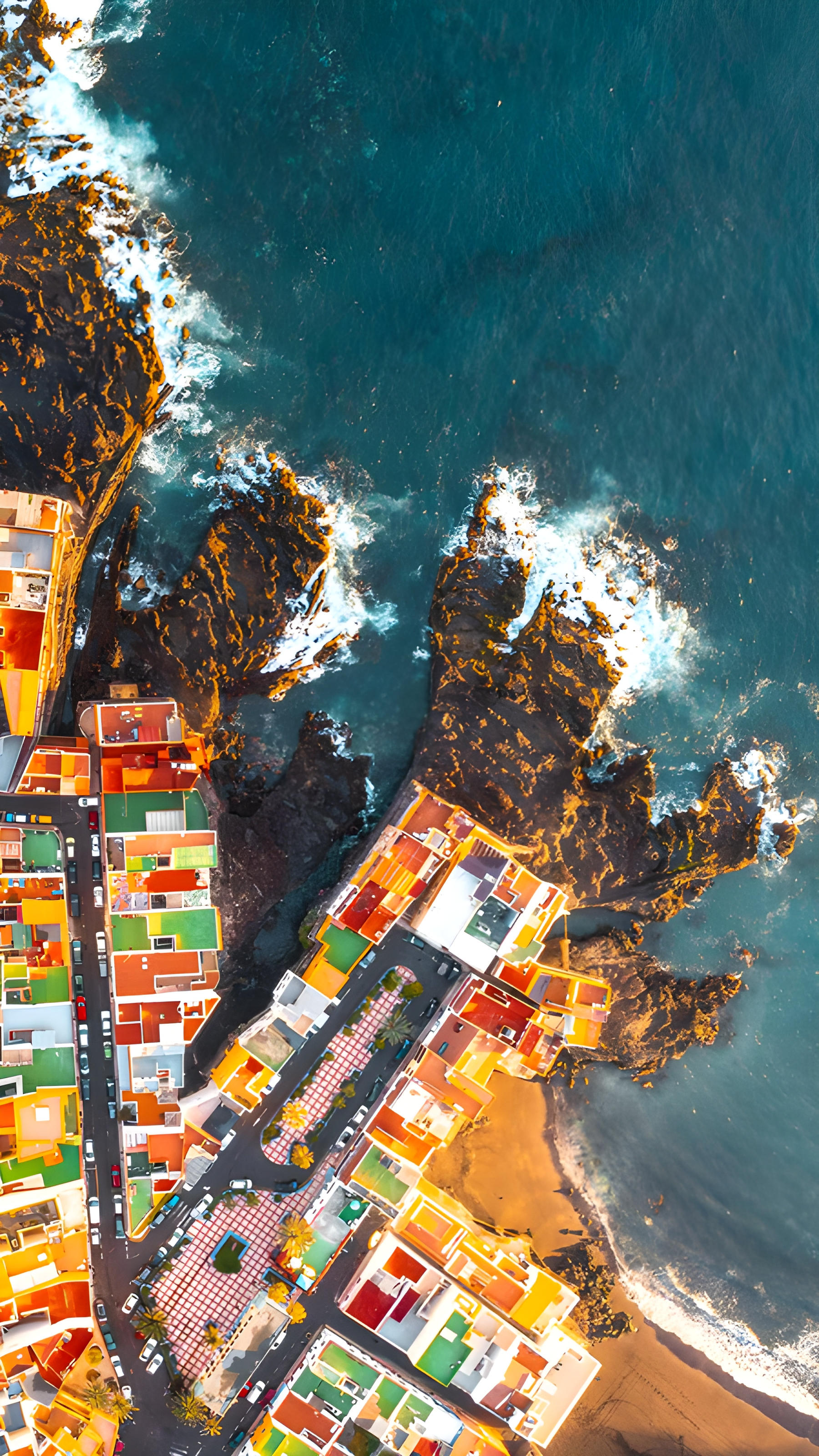 鸟瞰克鲁斯港色彩斑斓的房屋,特内里费岛,西班牙 (© Marco Bottigelli/Getty Images) - Bing Wallpaper on February 18, 2024