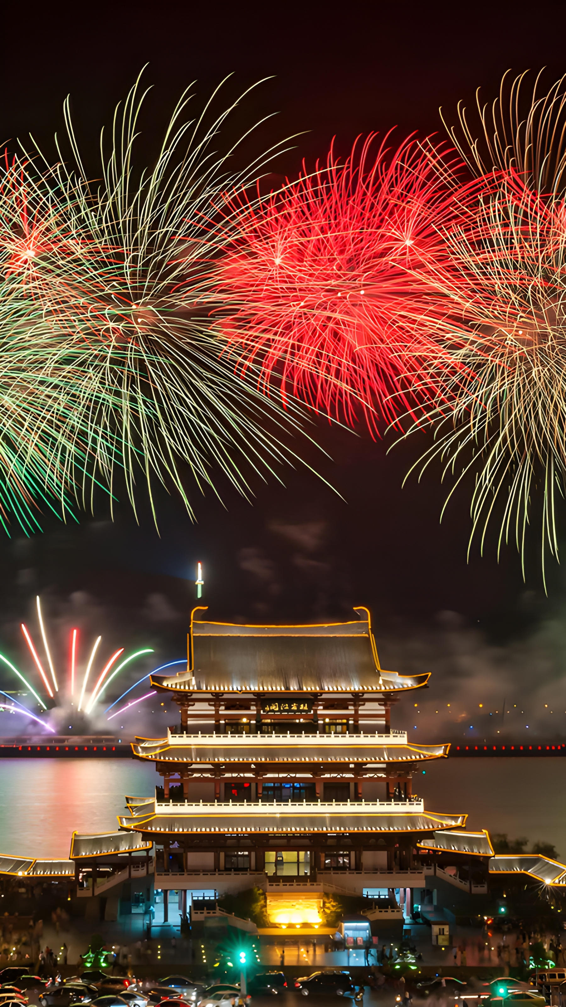 夜空中的烟花表演,长沙,湖南省,中国 (© Sino Images/Getty Images) - Bing Wallpaper on January 27, 2025