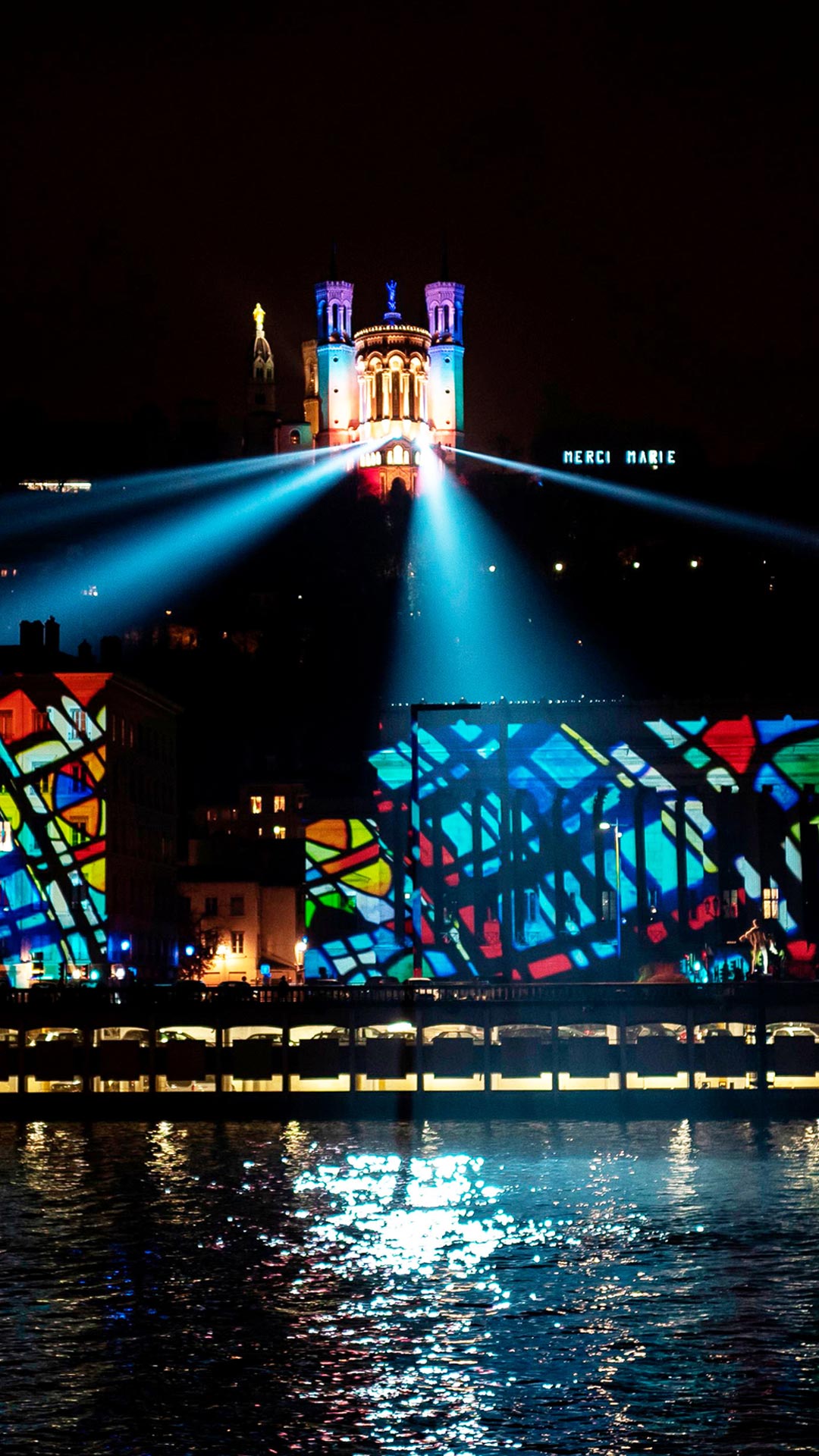 Basilique Notre Dame de Fourvière à Lyon pendant la Fête des Lumières (© Jean-Philippe Ksiazek/AFP/Getty Images) - Bing Wallpaper on December 4, 2019