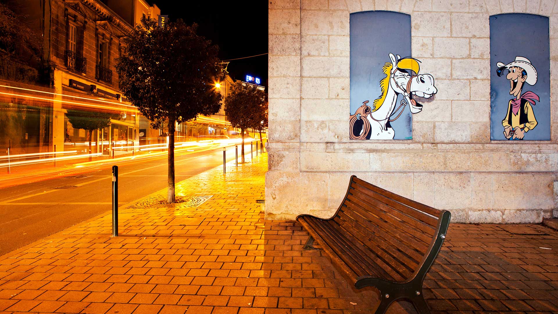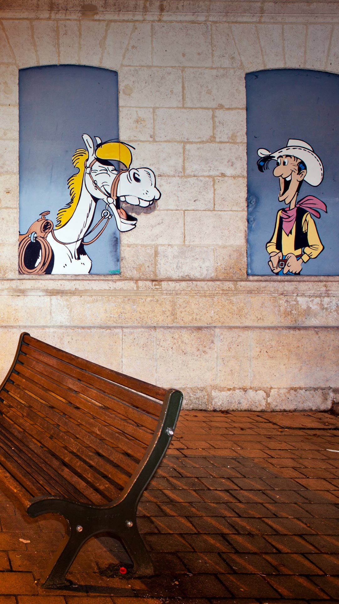 Extrait du mur peint « Les Daltons en prison », Lucky Luke et Jolly Jumper, pour le Festival international de la B.D d'Angoulême (© Jean-Marc Barrere/Hemis/AlamyStock Photo) - Bing Wallpaper on January 29, 2020