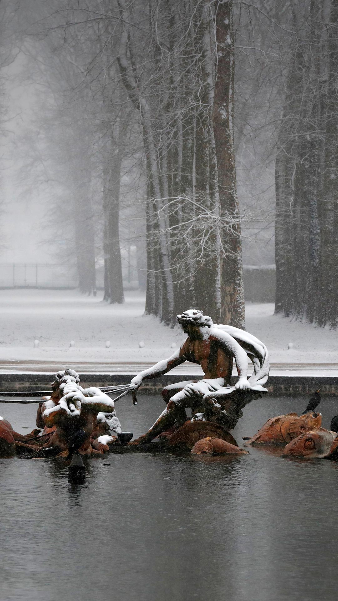 Le bassin d’Apollon sous la neige dans le parc du château de Versailles, photographié le 6 février 2018 (© FRANCOIS GUILLOT/AFP via Getty Images) - Bing Wallpaper on January 17, 2022