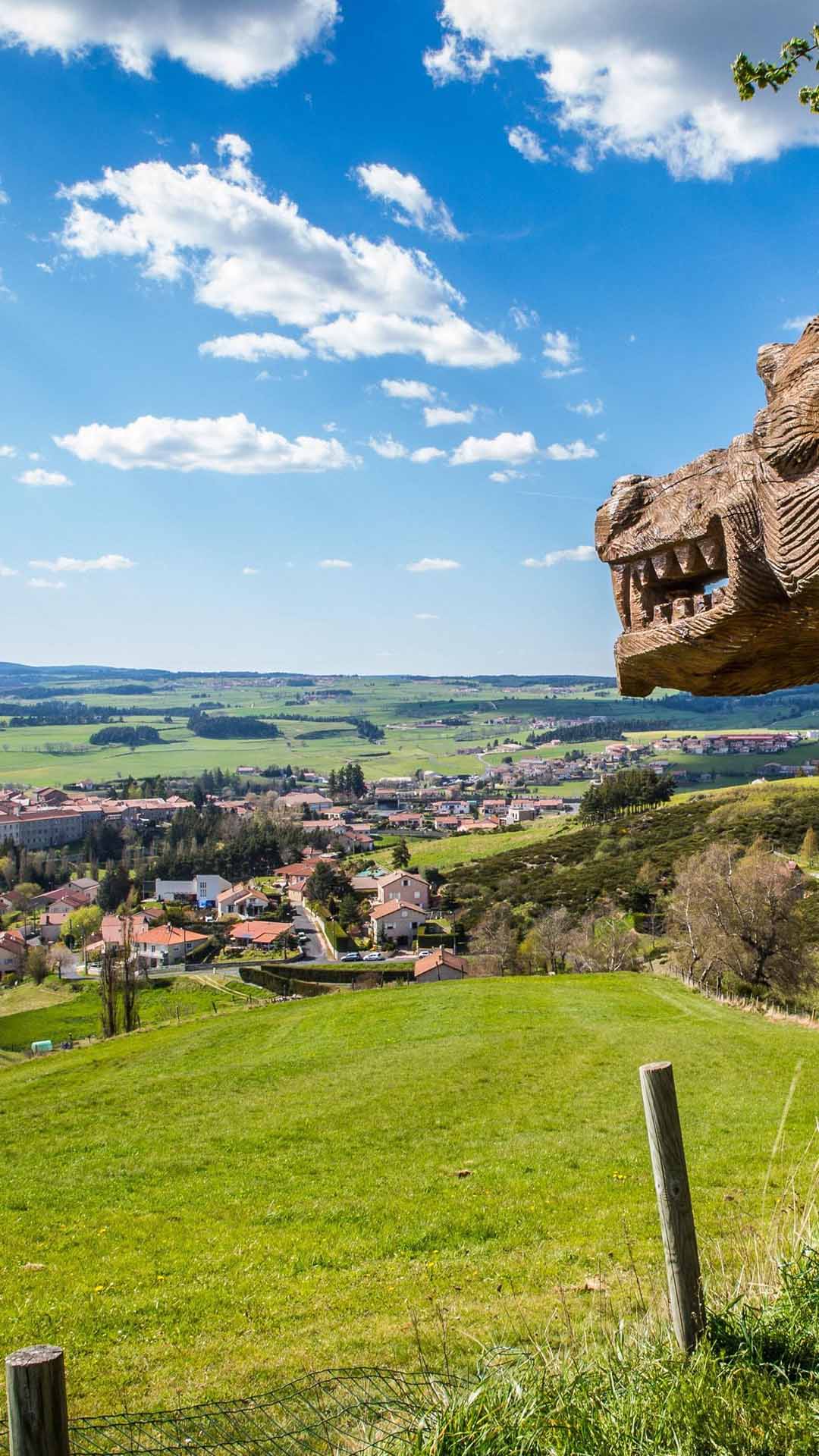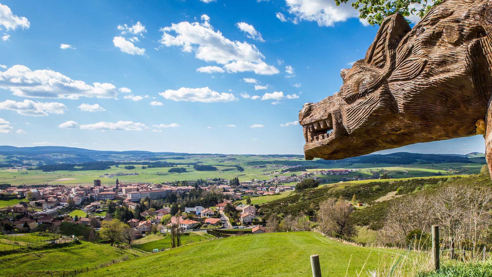 Saugues et de sa sculpture en bois de la bête du Gevaudan, Haute-Loire (© Gautier Stephane/Alamy Stock Photo) - Bing Wallpaper on April 20, 2023