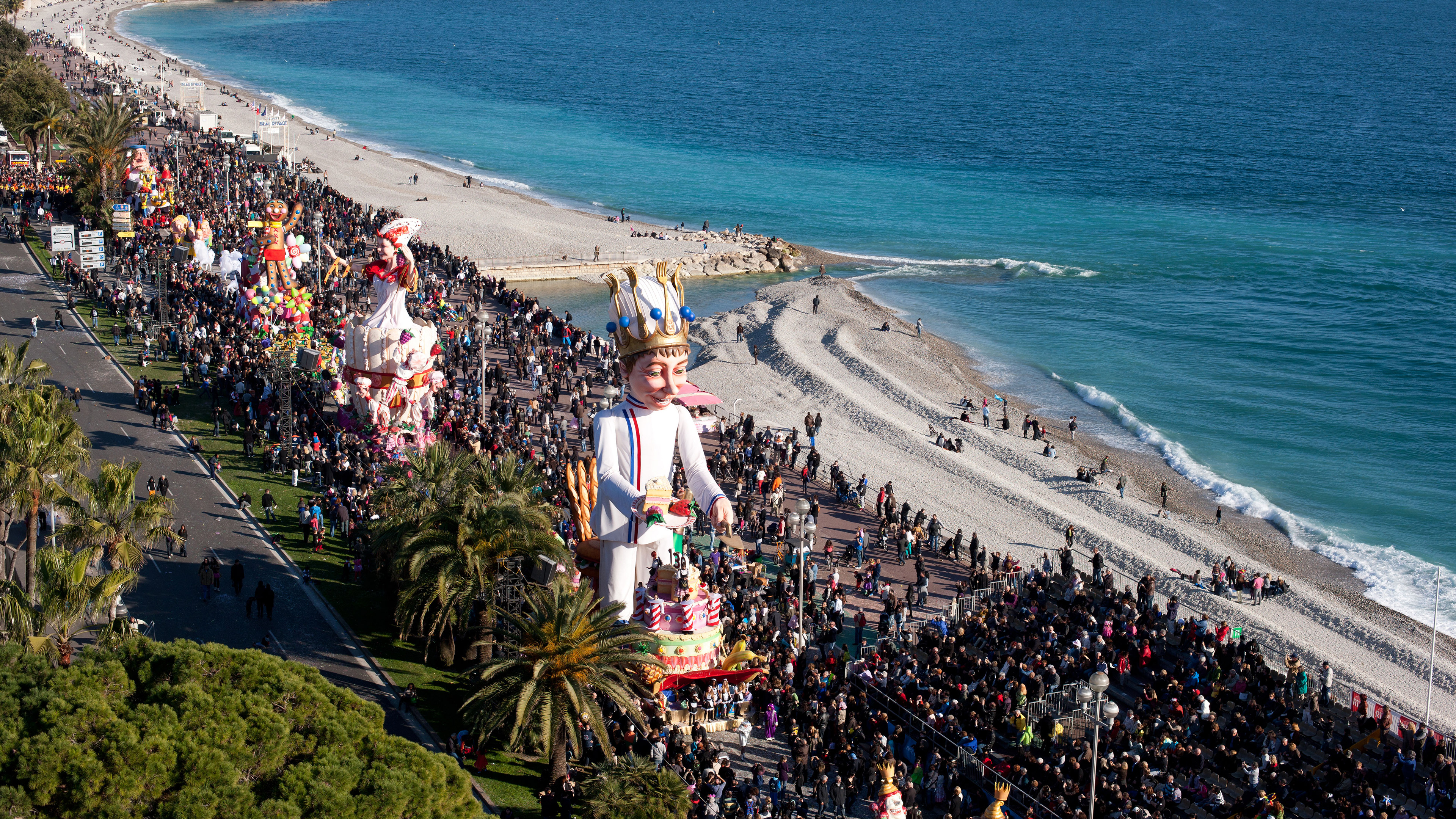 Défilé du Carnaval de Nice, le Roi sur la Promenade des Anglais (© aerial-photos.com/Alamy Stock Photo) - Bing Wallpaper on February 14, 2025