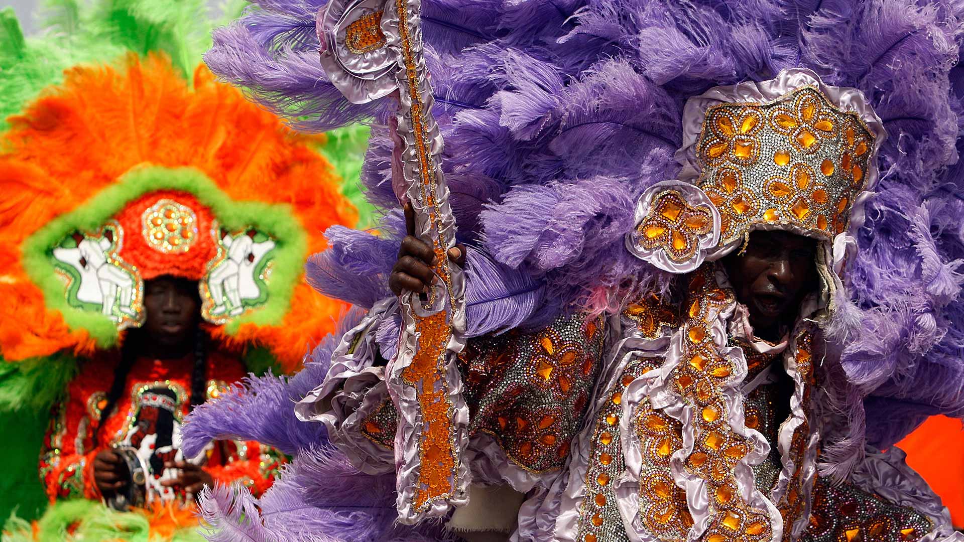 Mitglieder der Wild Red Flame Mardi Gras Indians in New Orleans, Louisiana, USA (© Chris Graythen/Getty Images) - Bing Wallpaper on March 4, 2019