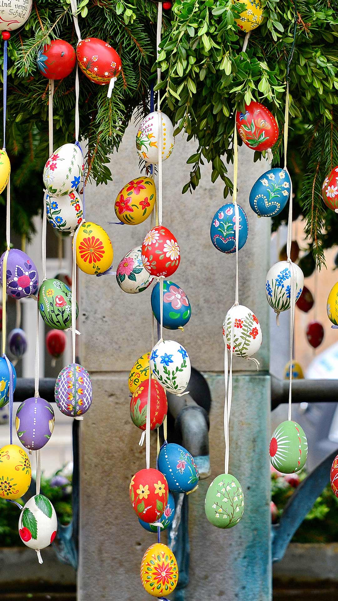 Eine Frau betrachtet Yayoi Kusamas Installation „With All My Love for The Tulips, I Pray Forever, 2011“. Zum Weltkunsttag (© Timothy A. Clary/Getty Images)