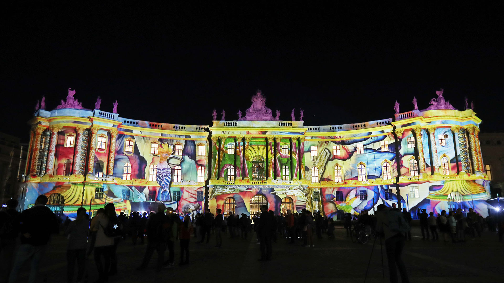 Die illuminierte Alte Bibliothek am Bebelplatz während des Festival of Lights 2018 in Berlin, Deutschland (© FELIPE TRUEBA/EPA-EFE/Shutterstock) - Bing Wallpaper on October 10, 2019
