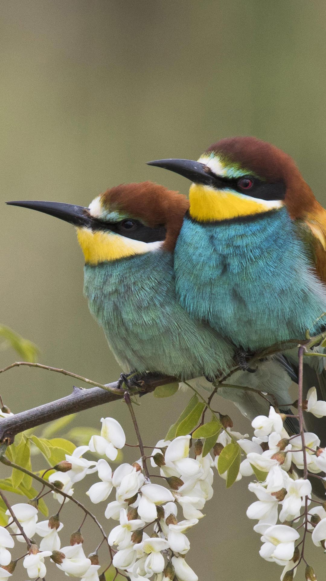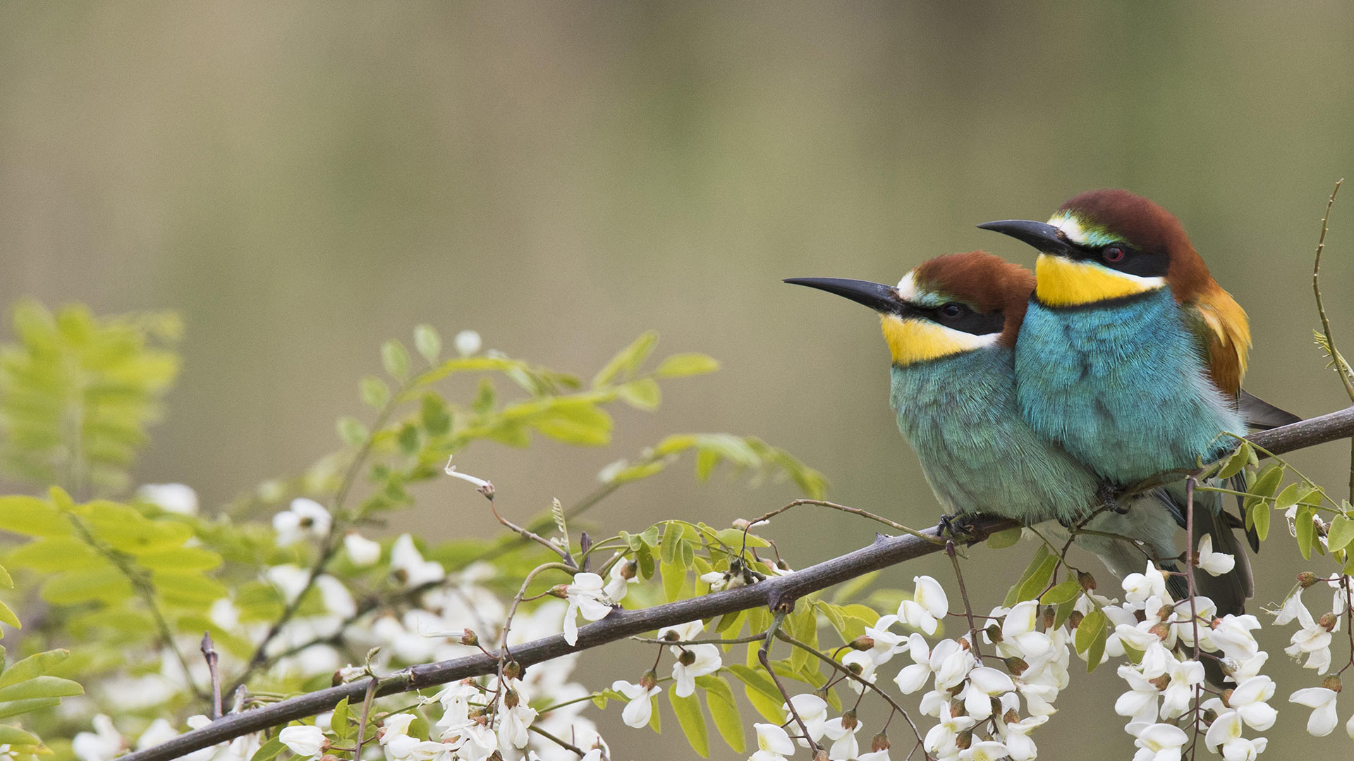 Bienenfresser-Paar auf dem Zweig einer blühenden Robinie, Rheinland-Pfalz, Deutschland (© imageBROKER/Erhard Nerger/Getty Images) - Bing Wallpaper on April 24, 2020