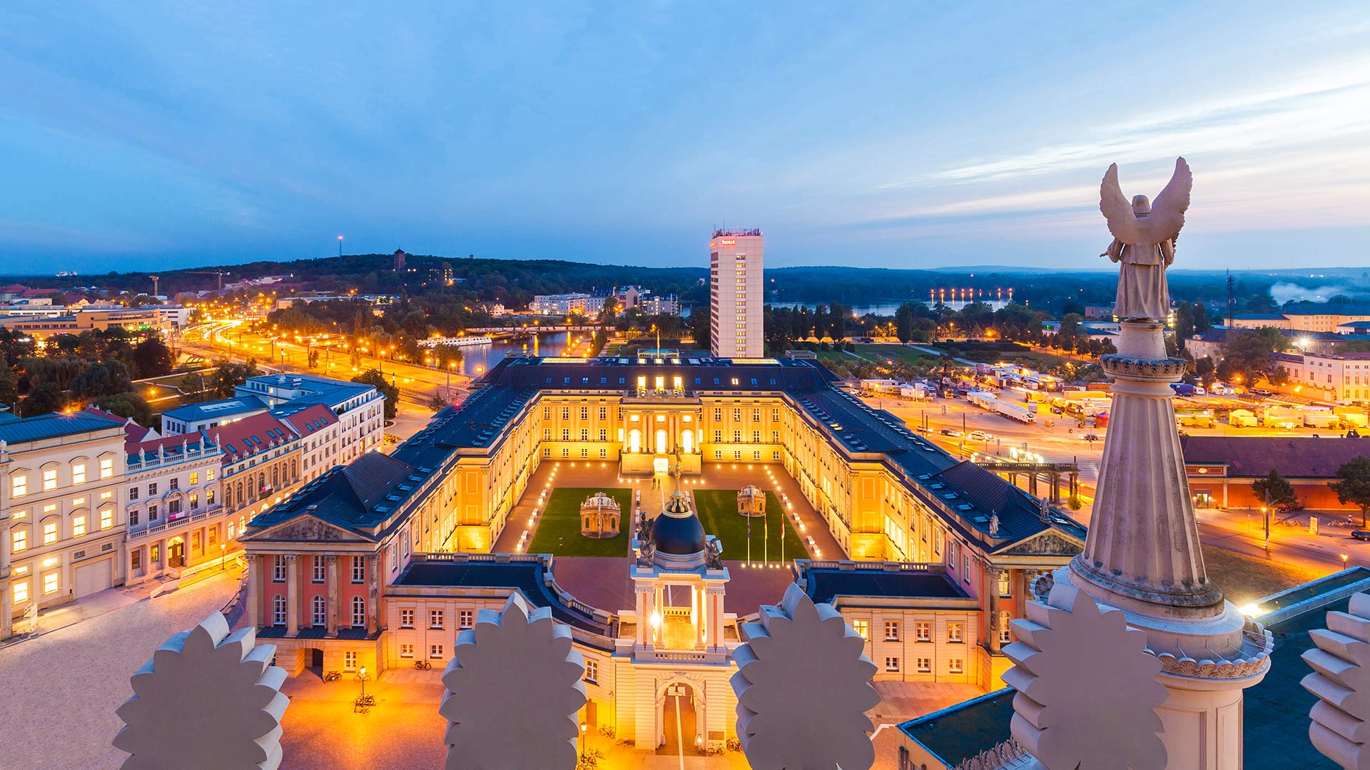 Blick von der Nikolaikirche auf das Stadtschloss mit dem Fortunaportal, Potsdam, Brandenburg (© Westend61/Cavan Images) - Bing Wallpaper on October 2, 2020