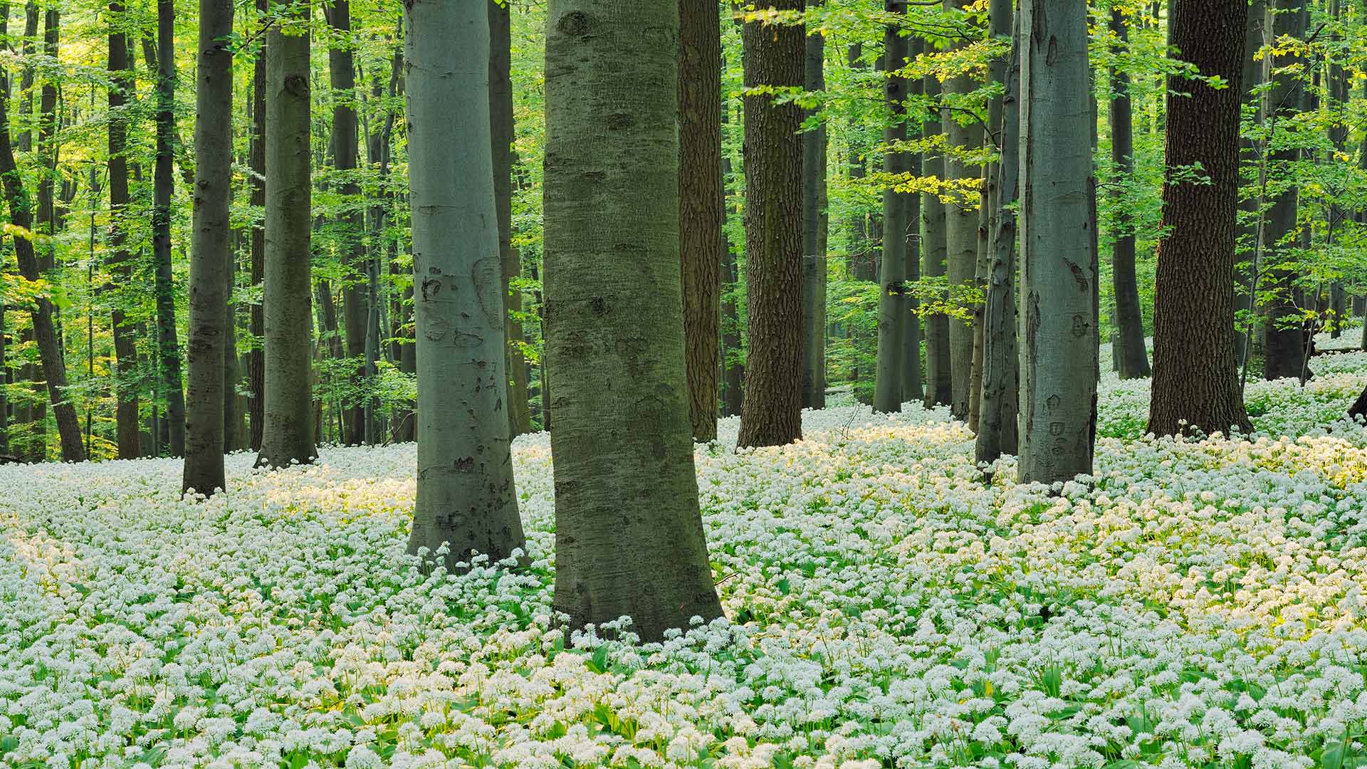 Blühender Bärlauch in einem Rotbuchenwald im Nationalpark Hainich, Thüringen (© Martin Ruegner/Stone/Getty Images) - Bing Wallpaper on April 10, 2022