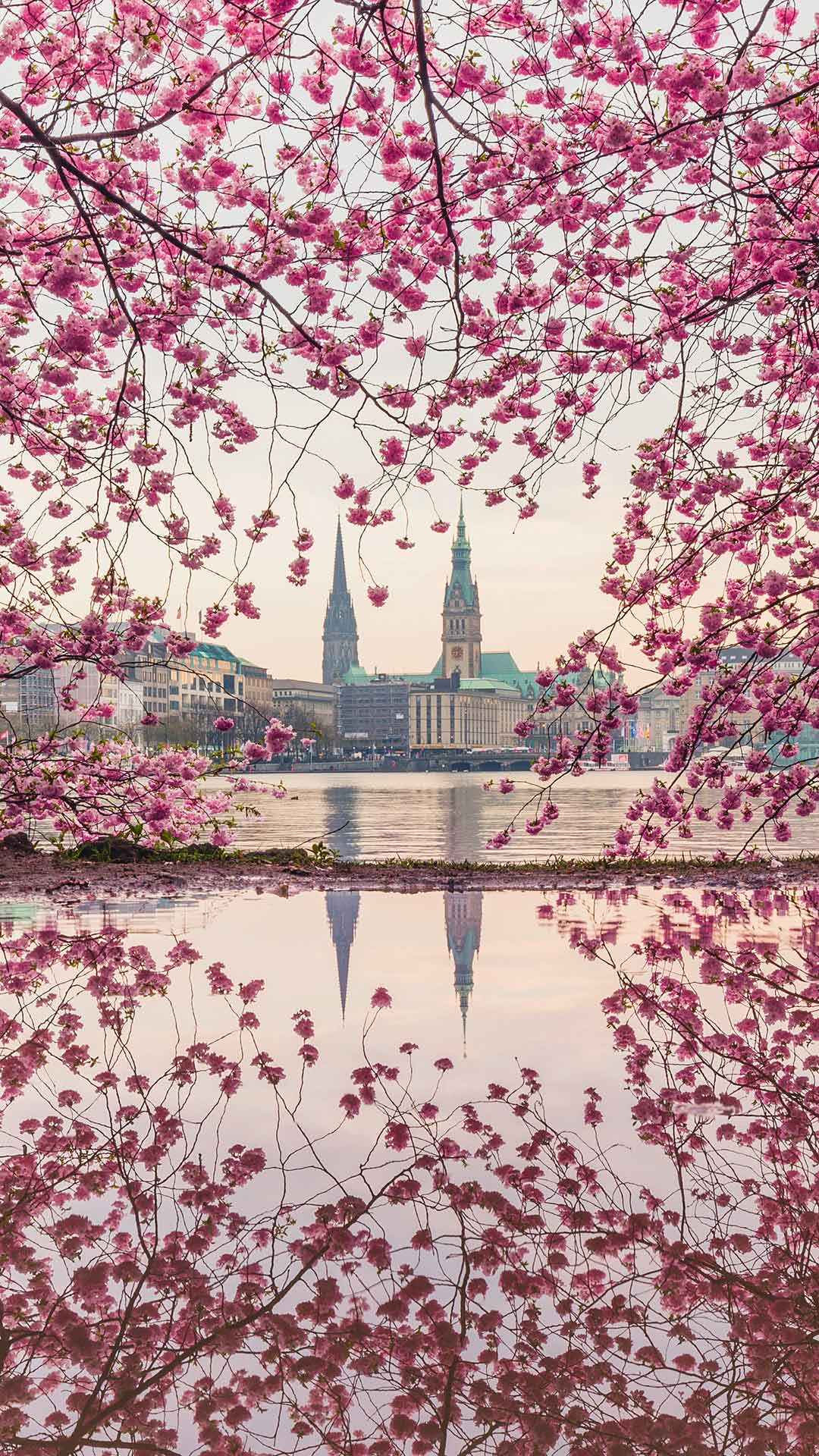 Blühende Kirschbäume an der Binnenalster, Hamburg (© Kerstin Bittner/Westend61/Offset) - Bing Wallpaper on April 30, 2022