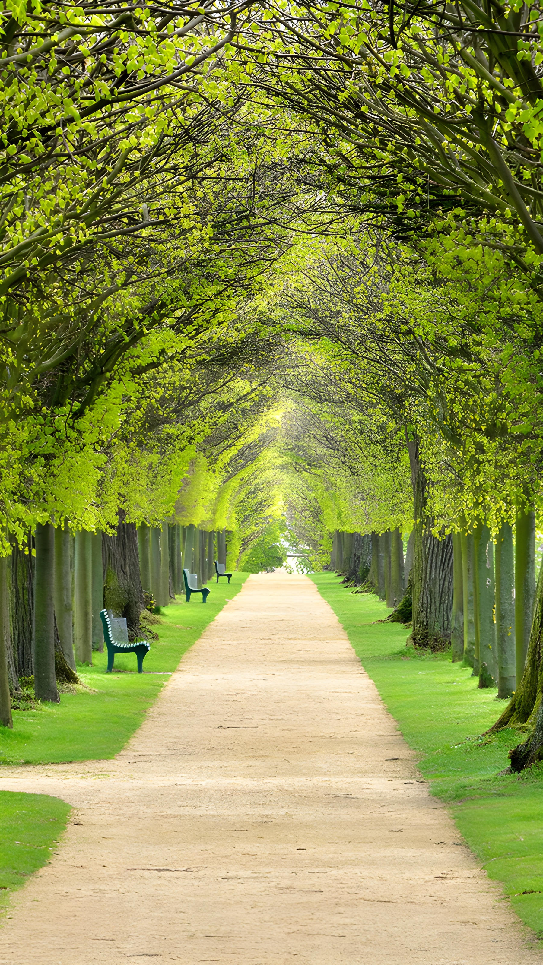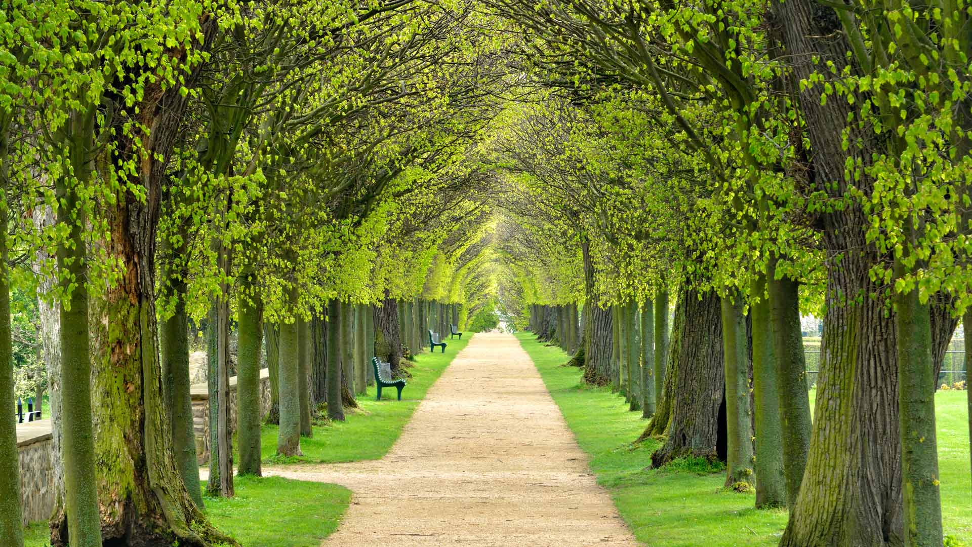 Lindenallee, baumgesäumter Fußweg durch den Park im Frühling (© AVTG/Getty Images) - Bing Wallpaper on March 14, 2024