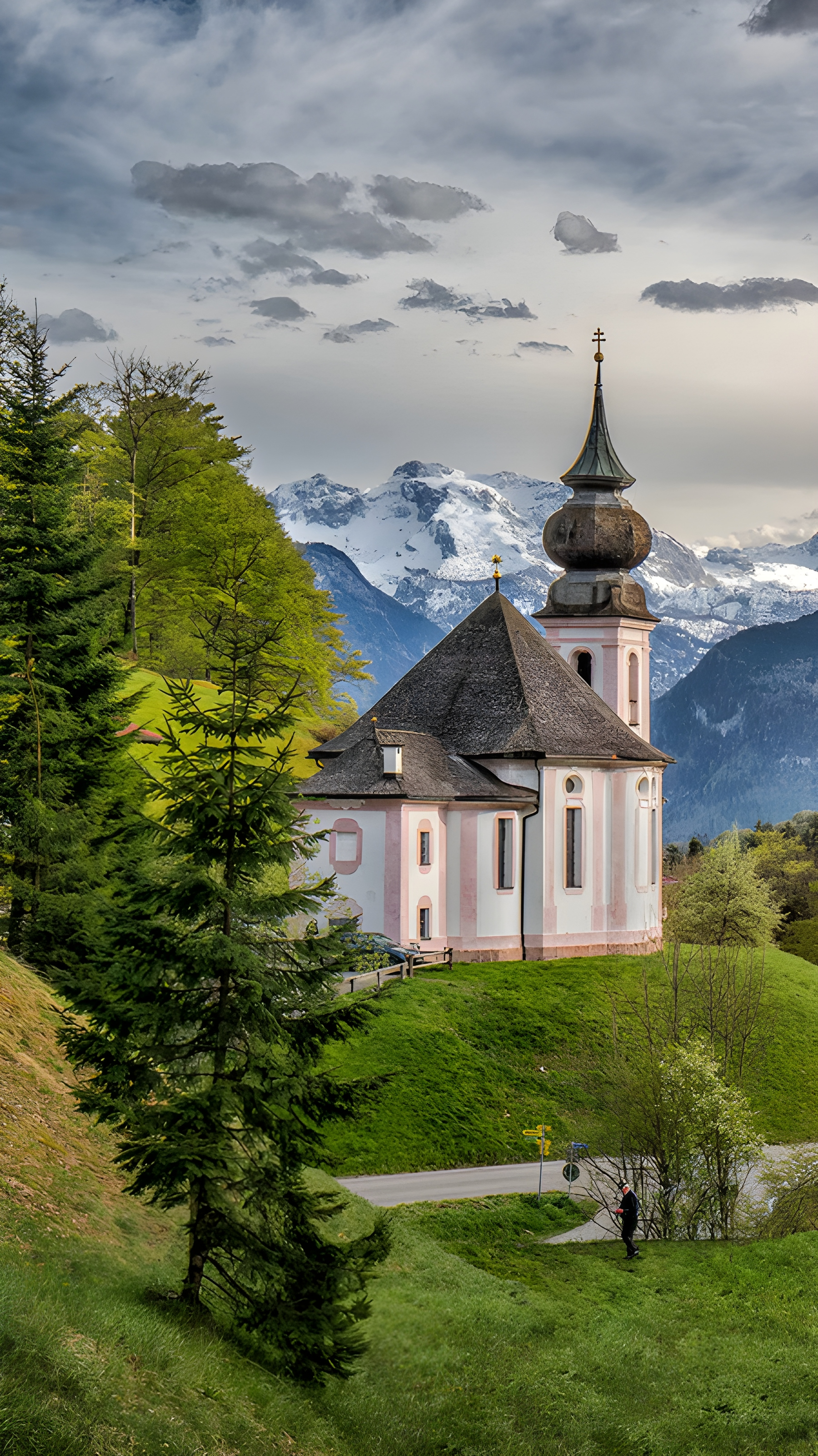 Wallfahrtskirche Maria Gern und Watzmannmassiv, Berchtesgadener Alpen, Bayern (© bluejayphoto/Getty Images) - Bing Wallpaper on March 8, 2025