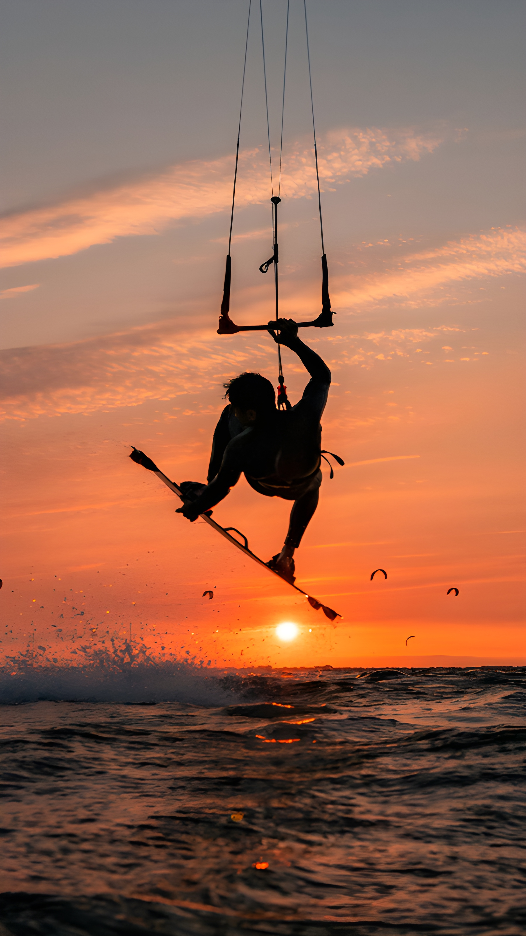 Silhouette eines springenden Kitesurfers bei Sonnenuntergang im baltischen Meer (© Jens Breuer/Getty Images) - Bing Wallpaper on August 25, 2025