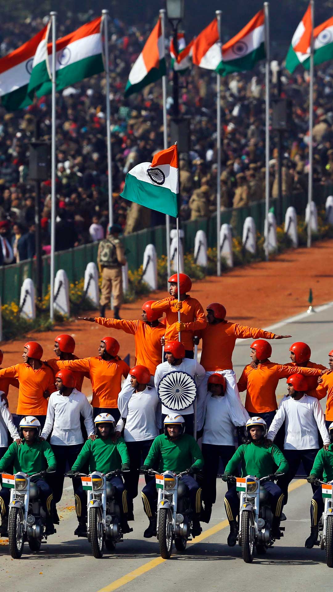 Military motorcycle stunt riders at Rajpath, on Republic Day 2013 (© AP Photo/Kevin Frayer) - Bing Wallpaper on January 25, 2020