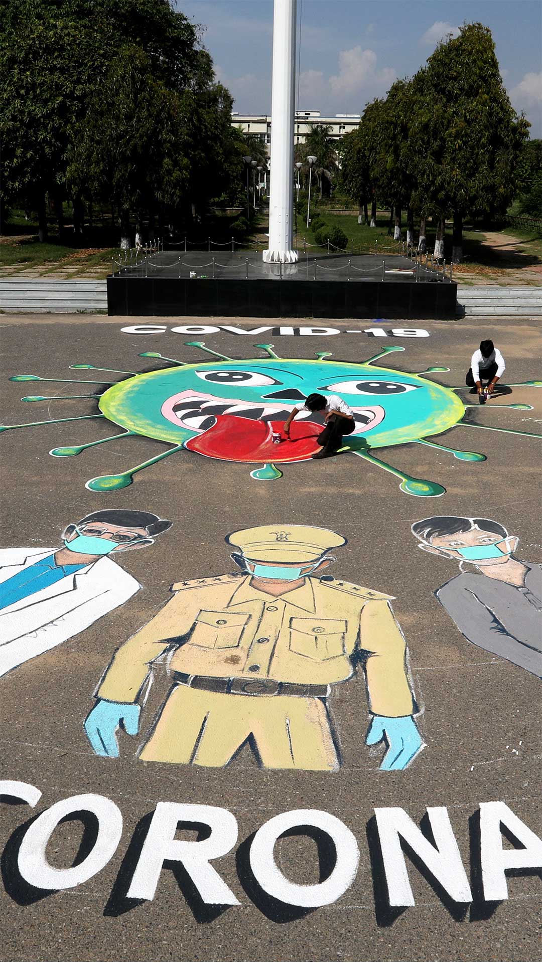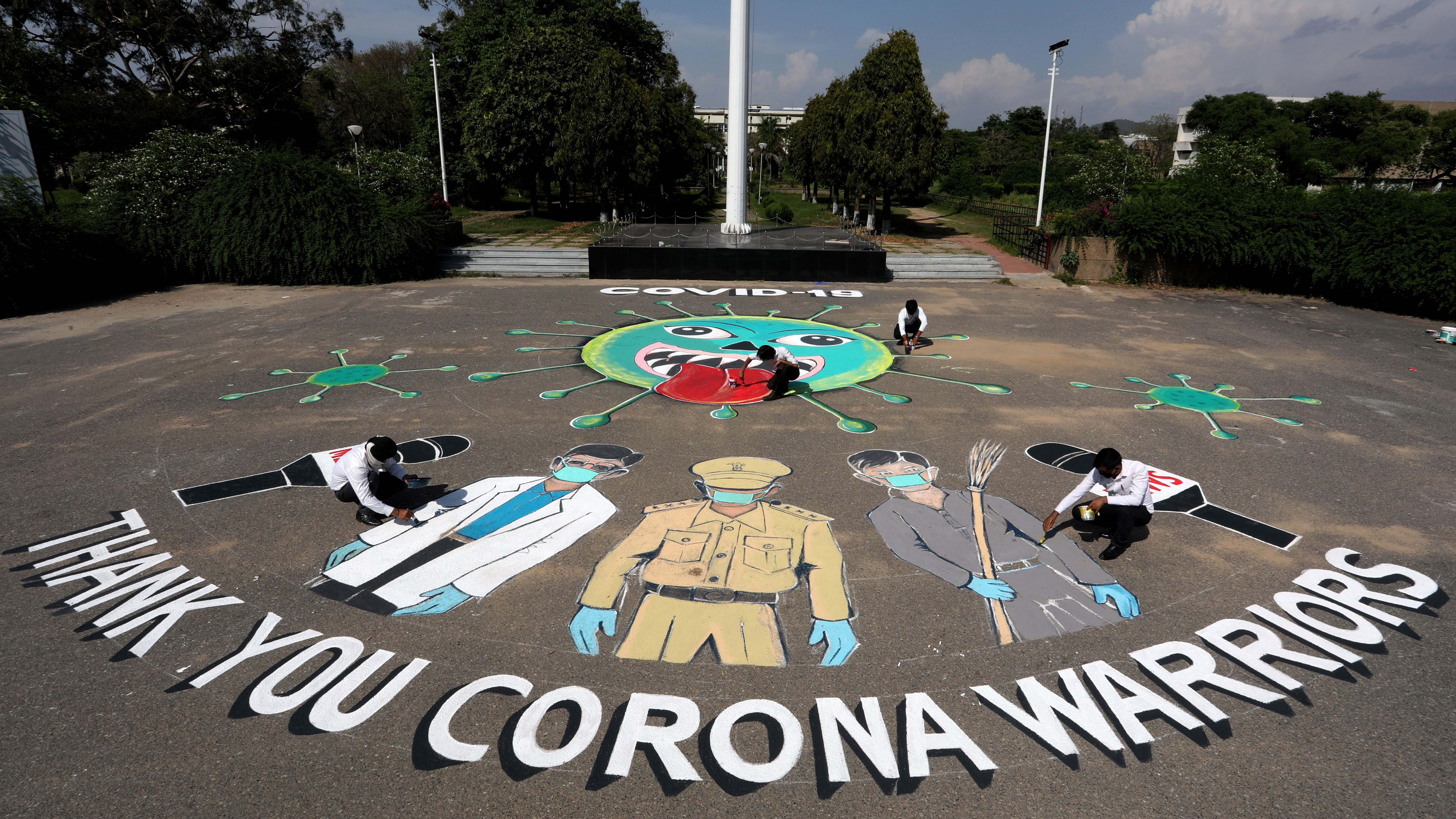 Artists of the Music and Fine Arts Institute, Jammu, paint 'Thank You Corona Warriors' (© JAIPAL SINGH/EPA-EFE/Shutterstock) - Bing Wallpaper on February 6, 2021