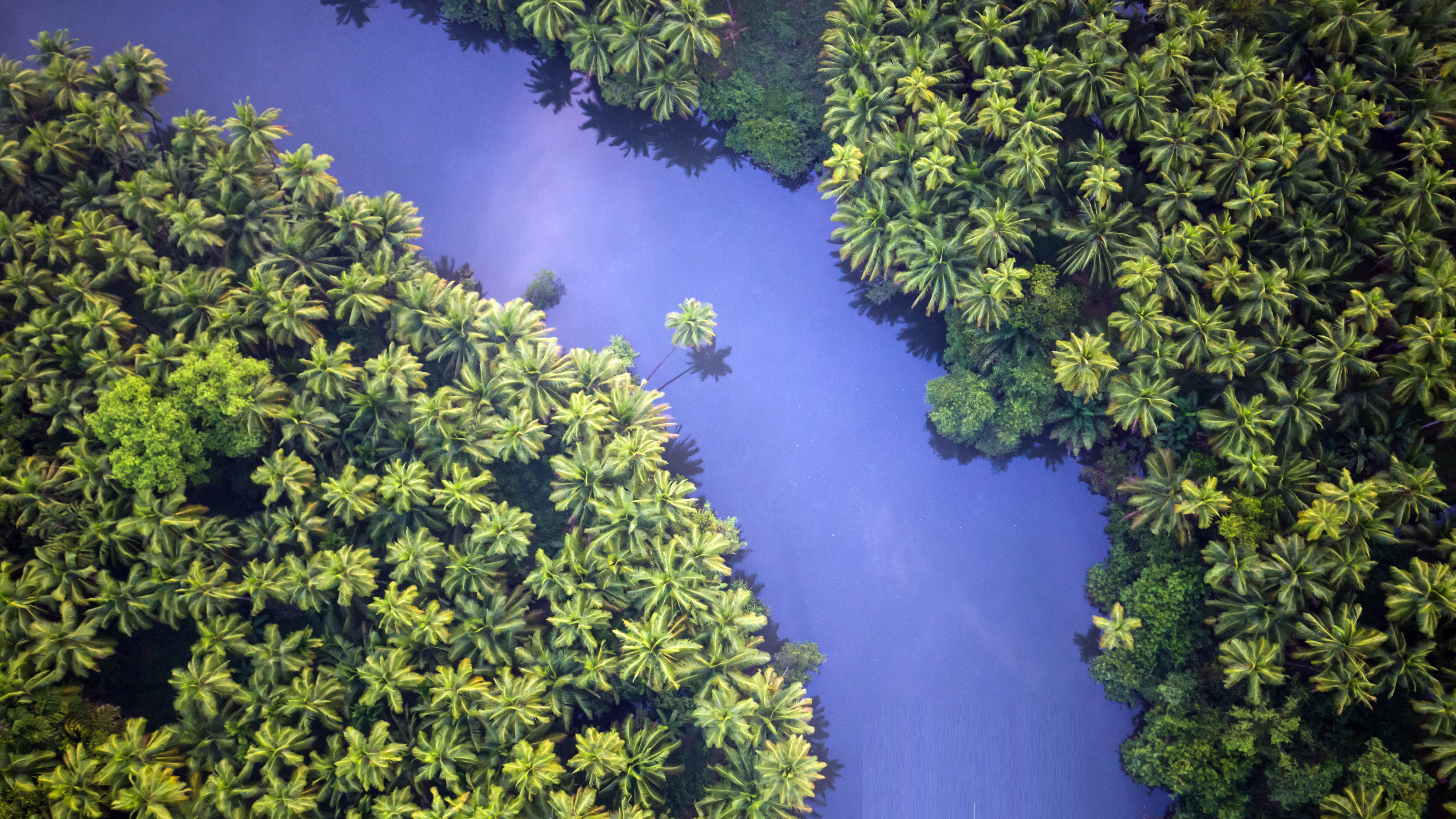 Aerial view of volcanic Lake Pinatubo and mountains, Porac, Philippines (© Amazing Aerial Agency/Offset by Shutterstock)