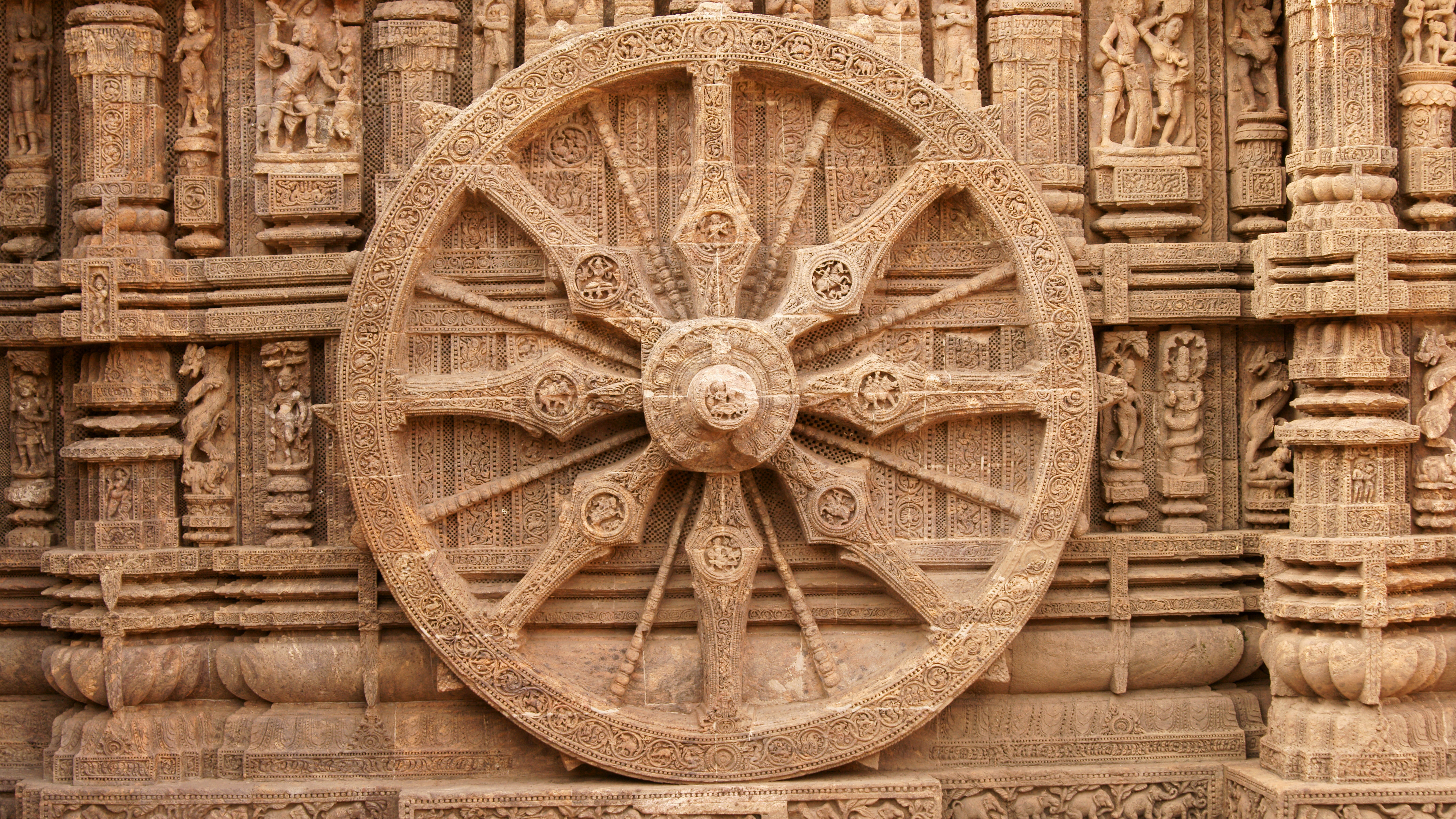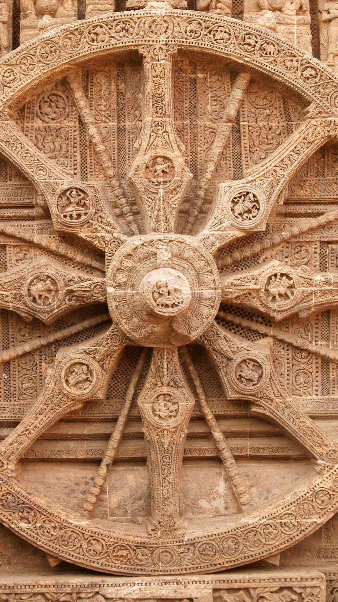 A stone wheel engraved in the walls of the Konarak Sun Temple in Orissa, India (© JeremyRichards/Getty Images) - Bing Wallpaper on July 11, 2021