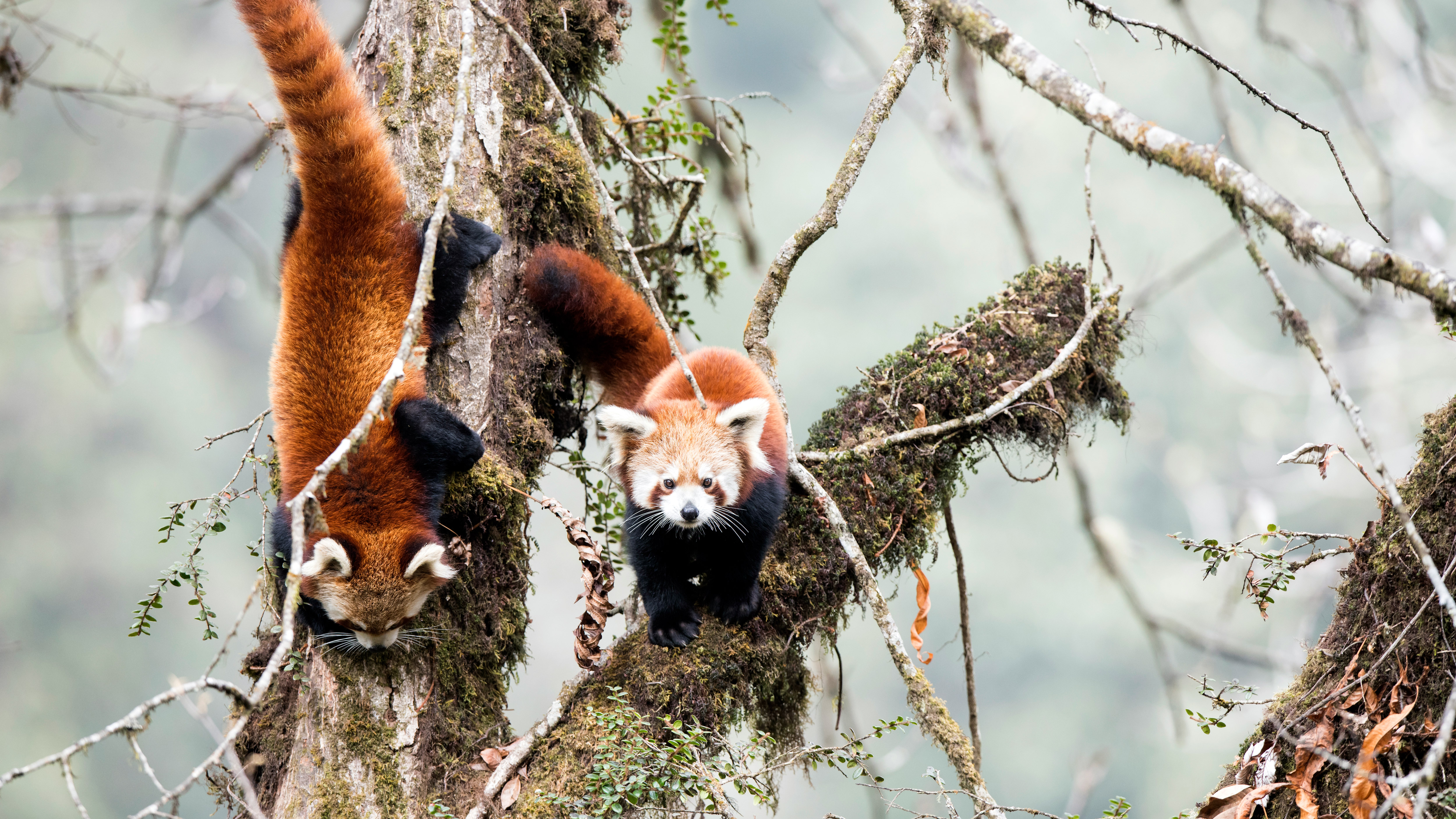 Red pandas in cloud forest habitat of Singalila in West Bengal, India (© Ben Cranke/Minden Pictures) - Bing Wallpaper on October 10, 2021