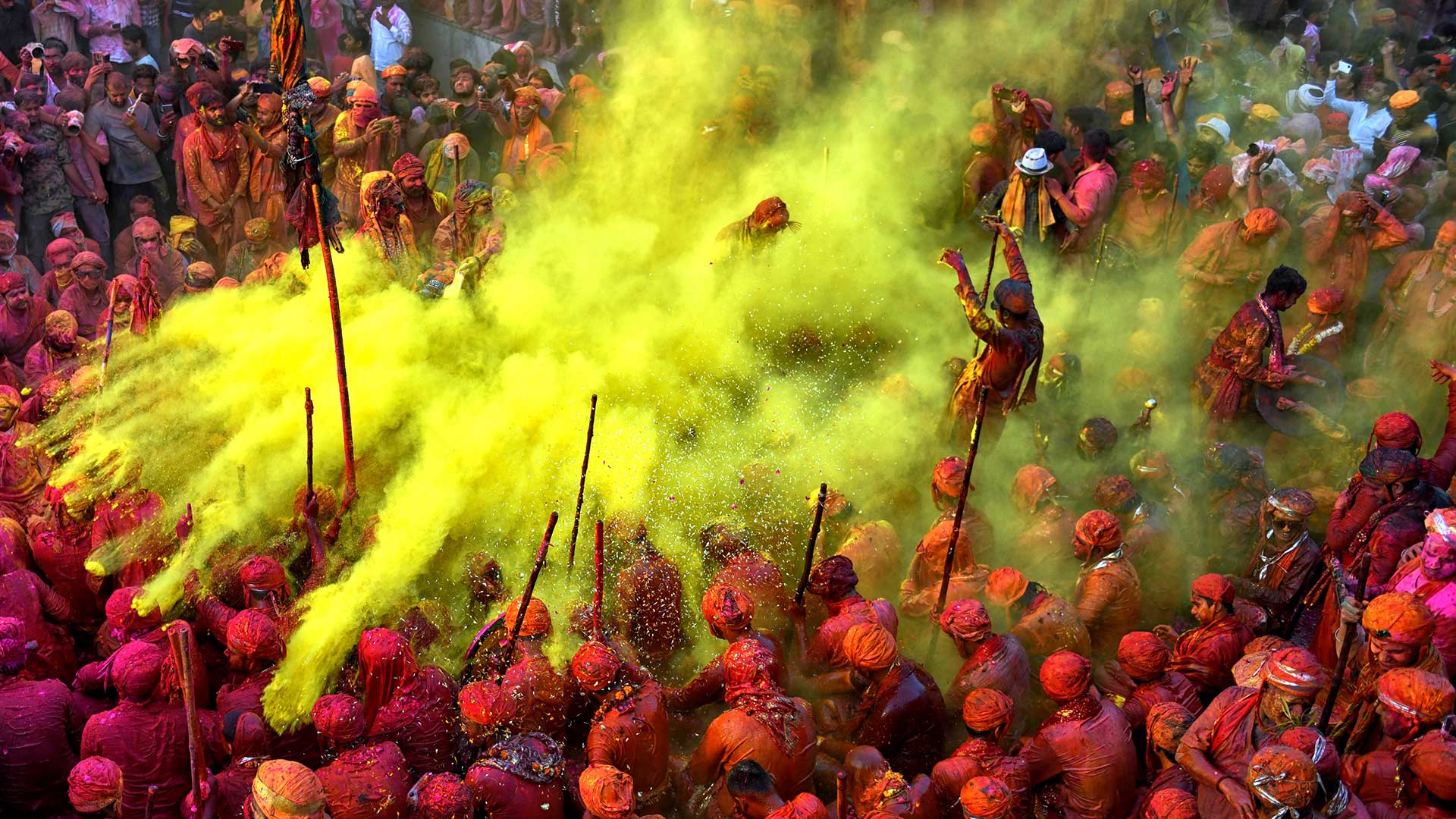 Holi celebrations, Nandgaon, Uttar Pradesh, India (© Avishek Das/Getty Images) - Bing Wallpaper on March 7, 2023