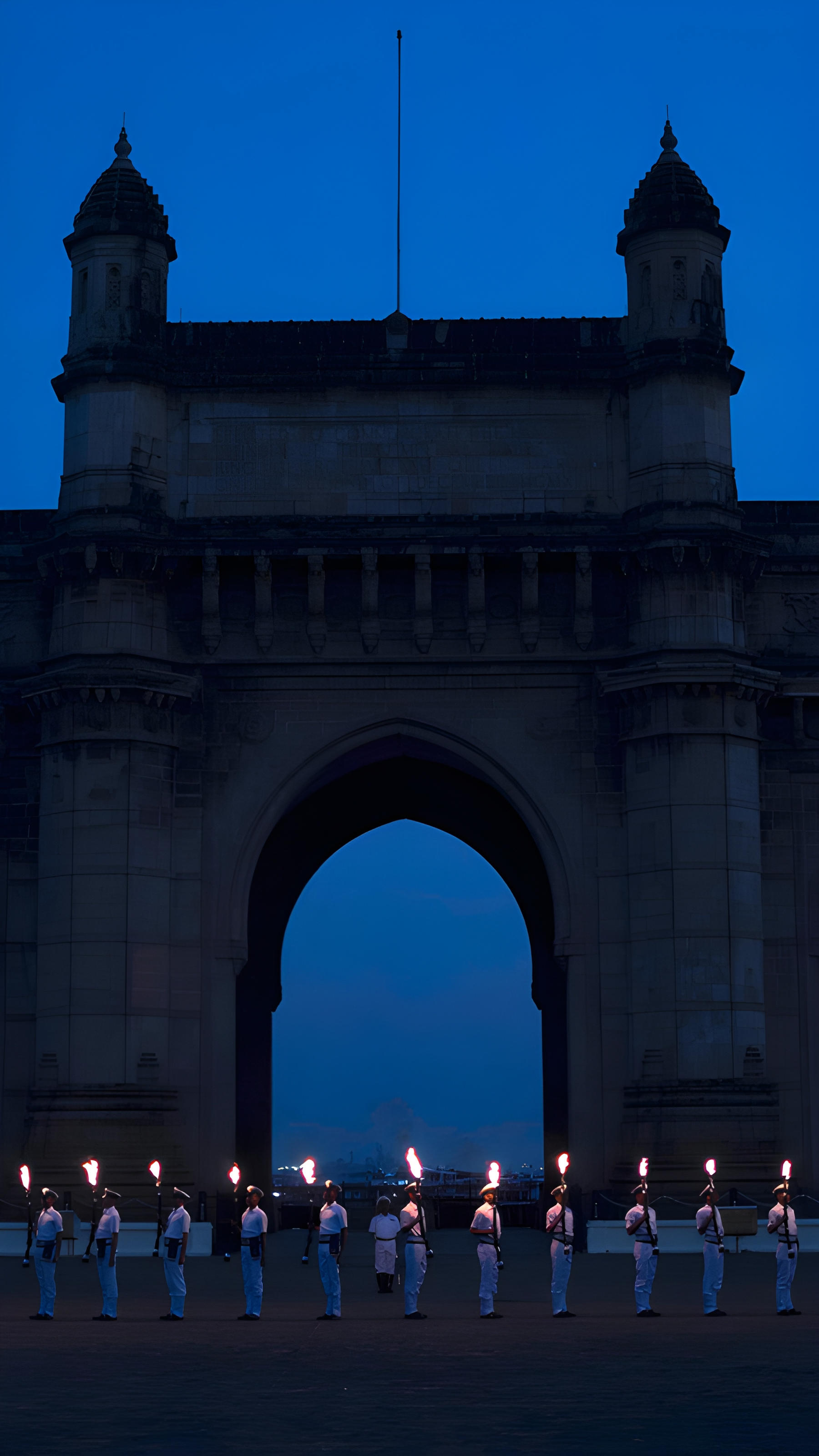 Indian Navy soldiers in front of the Gateway of India, Mumbai (© Danish Siddiqui/REUTERS) - Bing Wallpaper on December 3, 2024