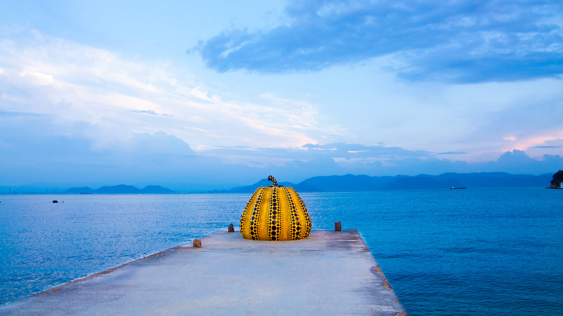 草間彌生の「南瓜」, 香川県 香川郡 (© hedgehog111/Shutterstock) - Bing Wallpaper on October 30, 2024