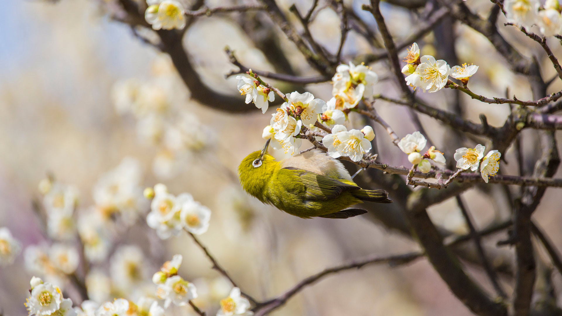 梅の花で吸蜜するメジロ (© yankane/shutterstock) - Bing Wallpaper on February 2, 2025
