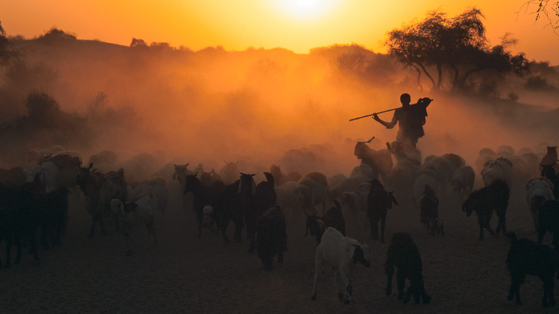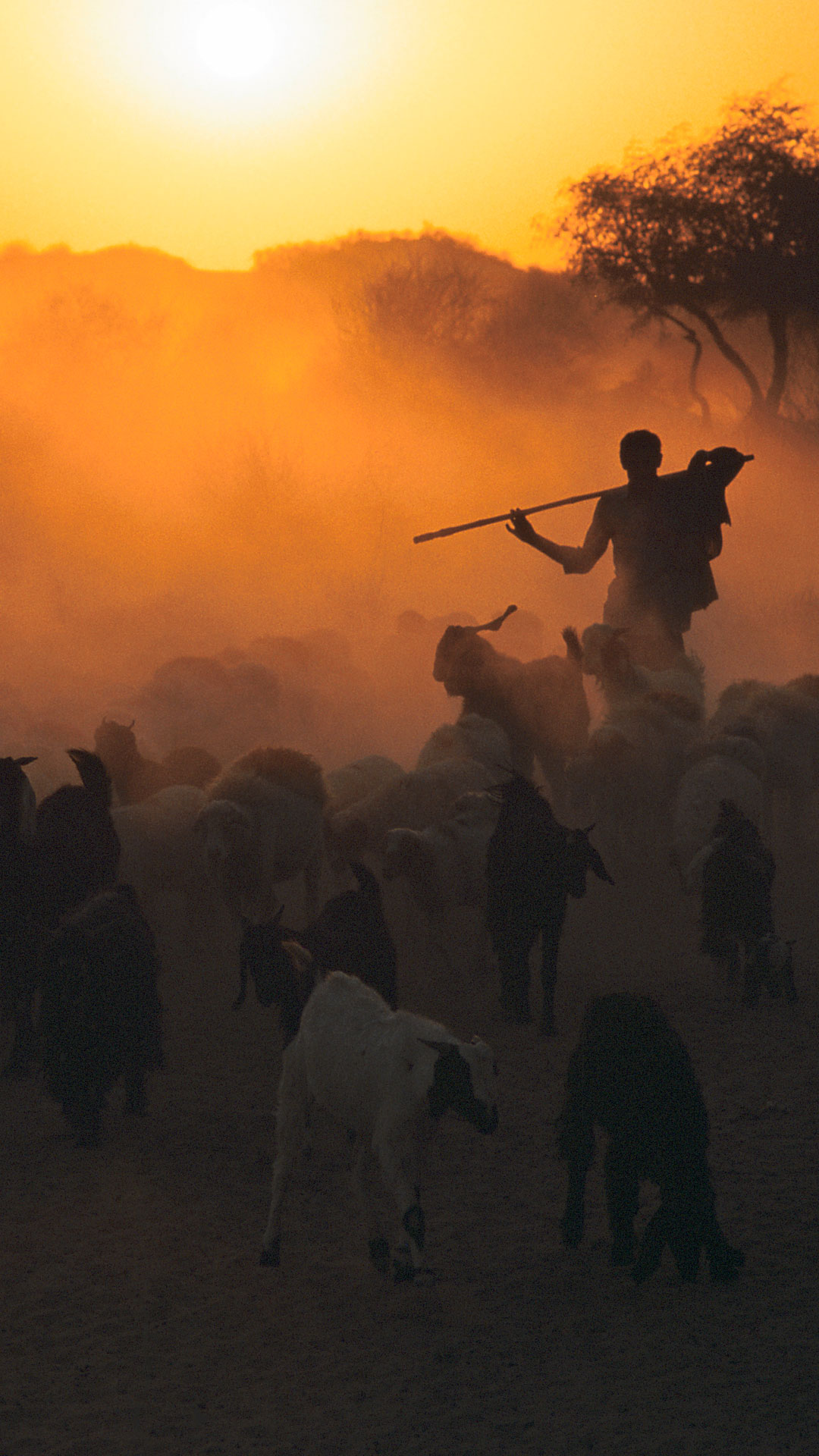 Shepherd with flock of sheep at dawn, Thar desert (© Laurent Geslin/Minden Pictures) - Bing Wallpaper on August 11, 2019