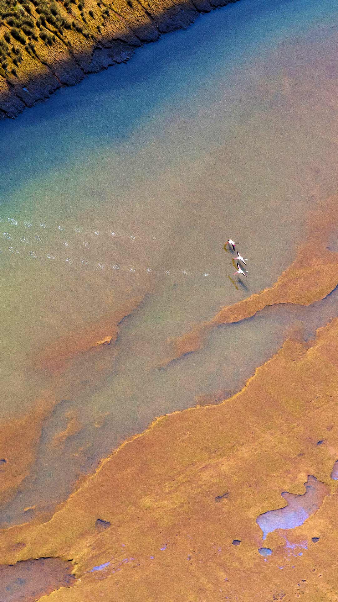 Greater flamingo trio taking flight from Odiel wetland in Huelva, Andalusia, Spain (© Óscar Díez/Minden Pictures) - Bing Wallpaper on October 7, 2019