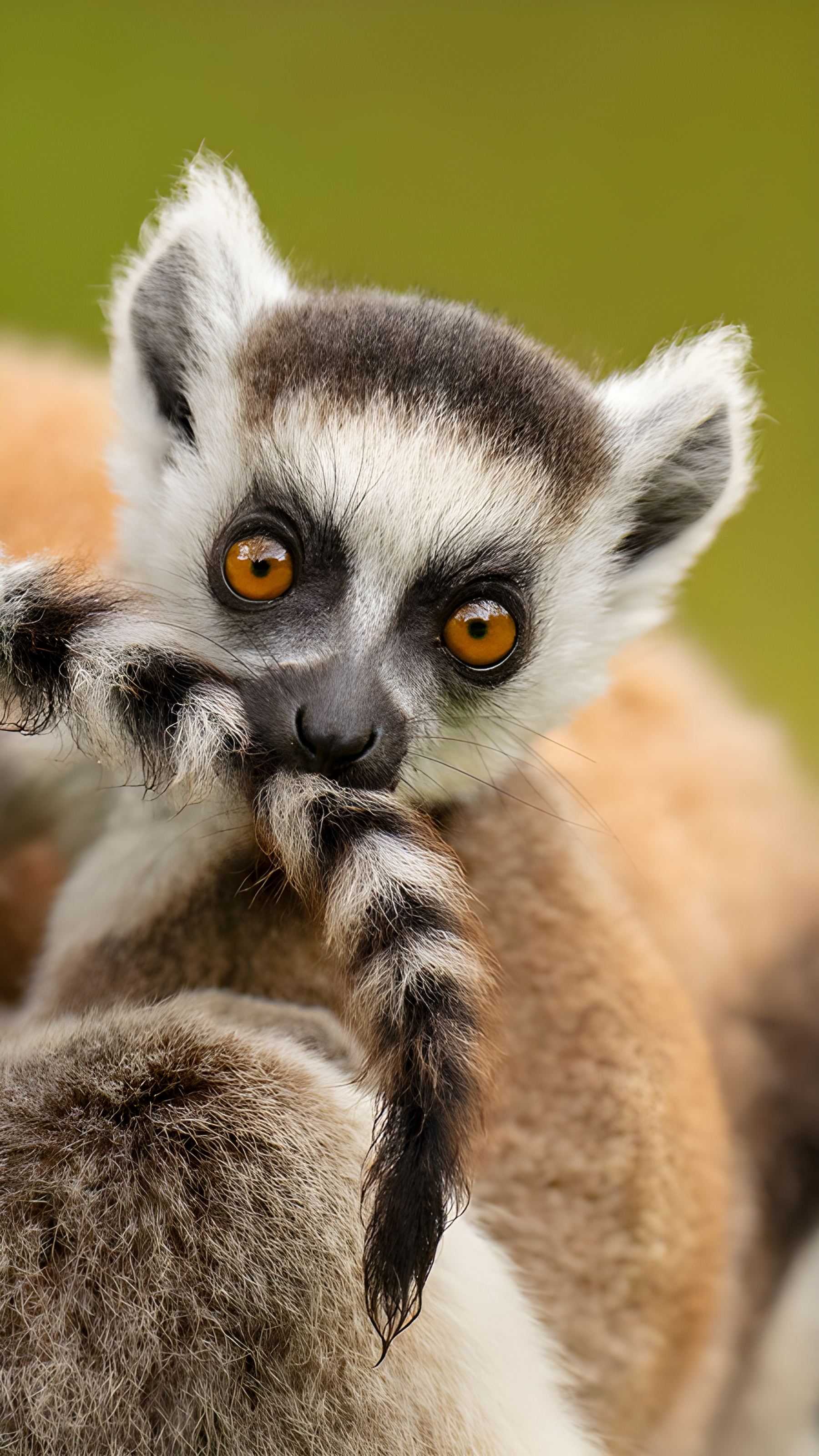 Ring-tailed lemur infant playing with its own tail, Madagascar (© Andy Rouse/Nature Picture Library) - Bing Wallpaper on August 6, 2025