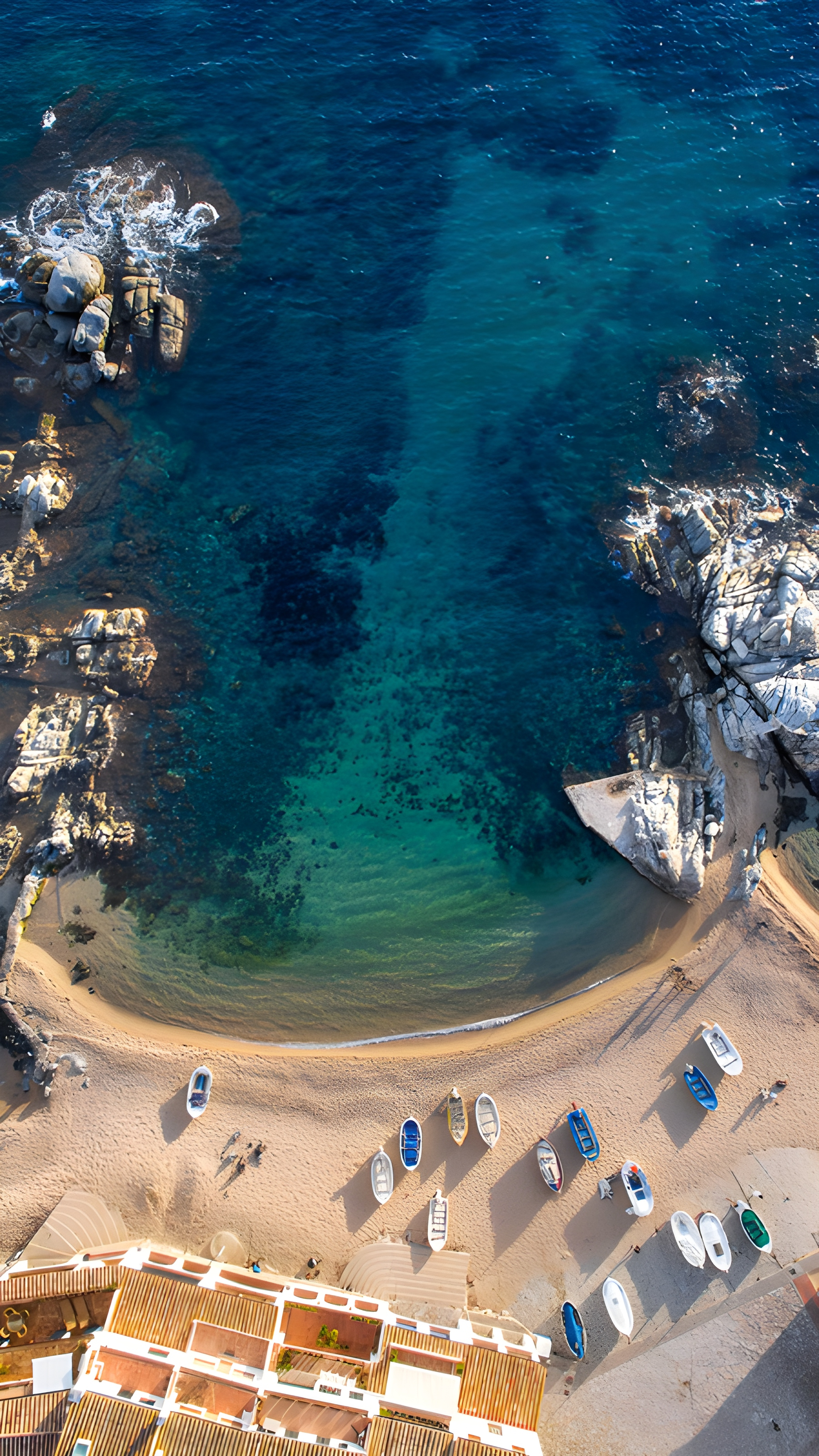 Vista aérea de Port Bo de Calella en la costa de Palafrugell, Gerona, Cataluña, España (© AlexKazachok2/iStock/Getty Images Plus) - Bing Wallpaper on August 30, 2025