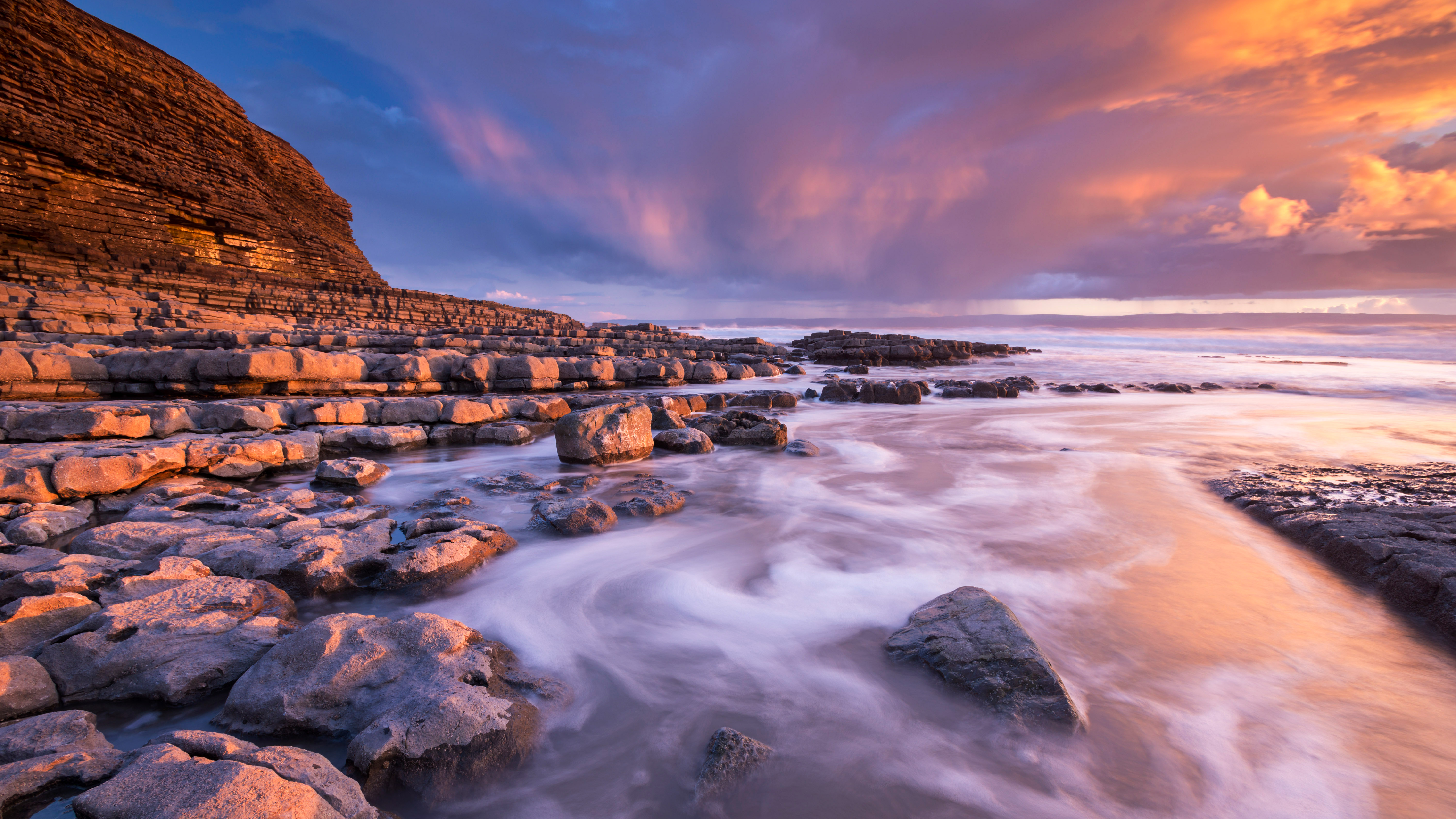 Sunset over Nash Point on the Glamorgan Heritage Coast, South Wales in winter. (© AWL Images/DanitaDelimont.com) - Bing Wallpaper on January 4, 2021