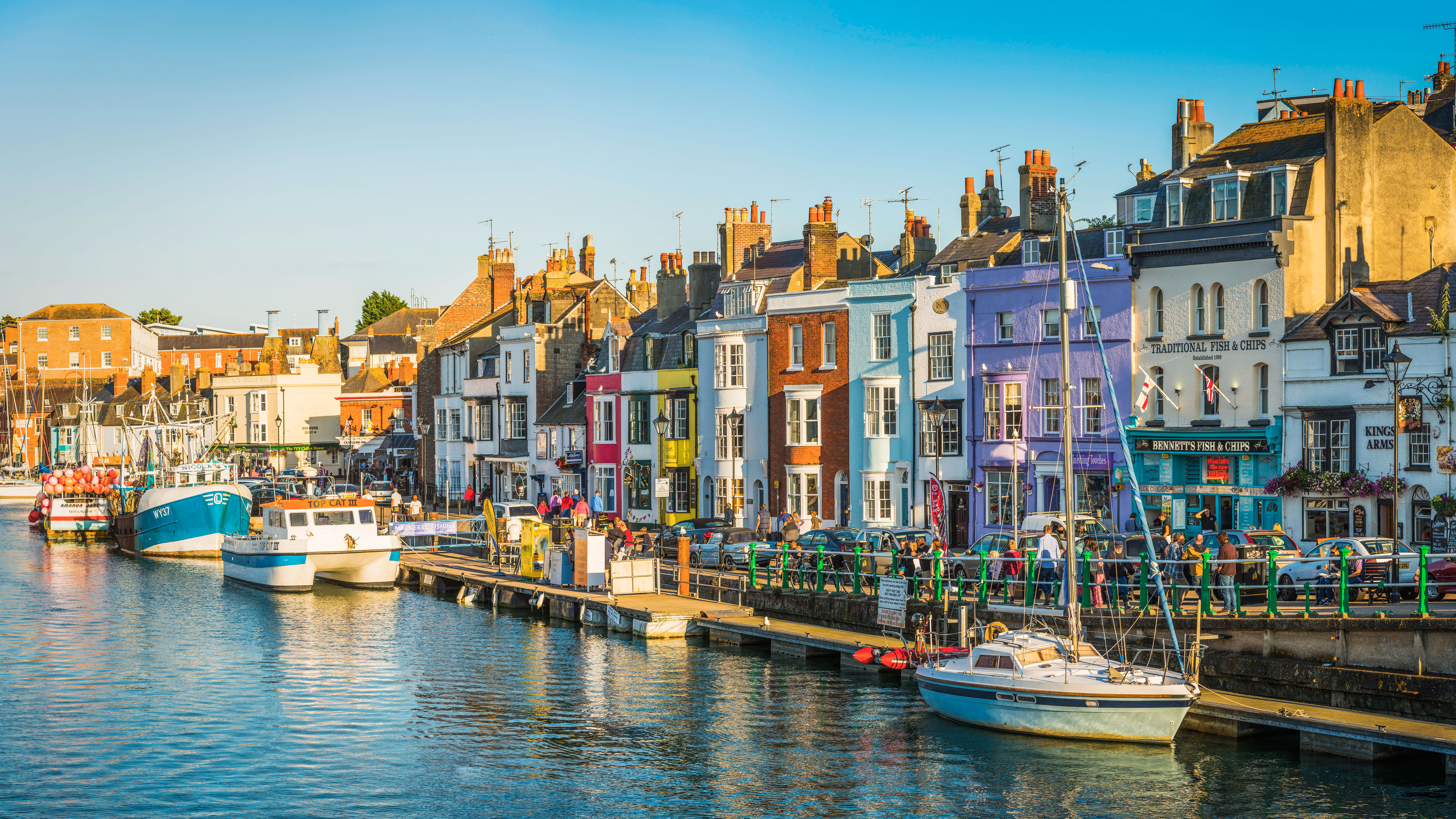 Colourful cottages, fishing boats and yachts around the harbour in Weymouth, Dorset (© fotoVoyager/Getty Images) - Bing Wallpaper on August 26, 2021