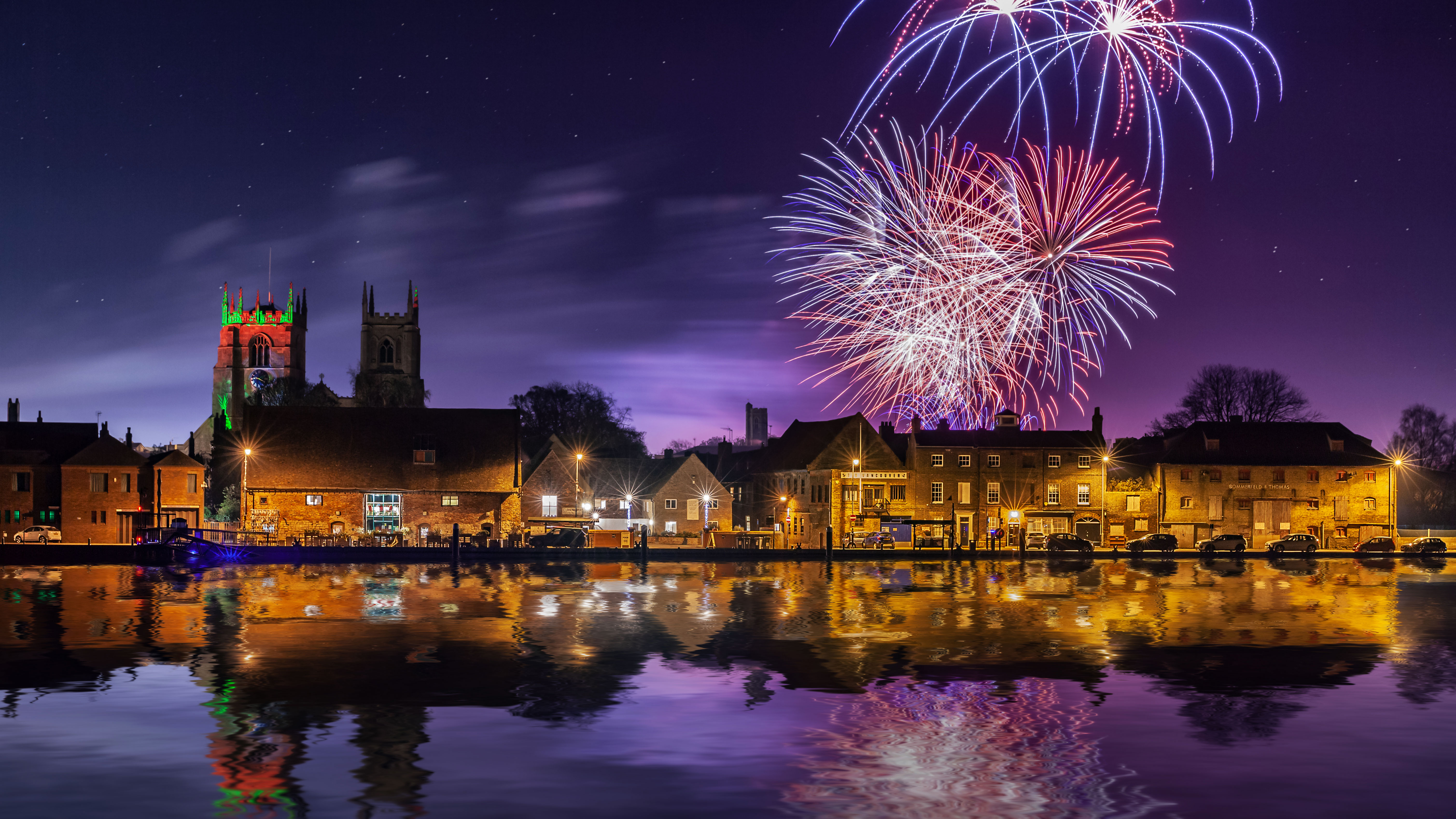 Fireworks exploding over the Great River Ouse, King's Lynn, Norfolk (© Simon Bratt/Shutterstock) - Bing Wallpaper on November 5, 2021