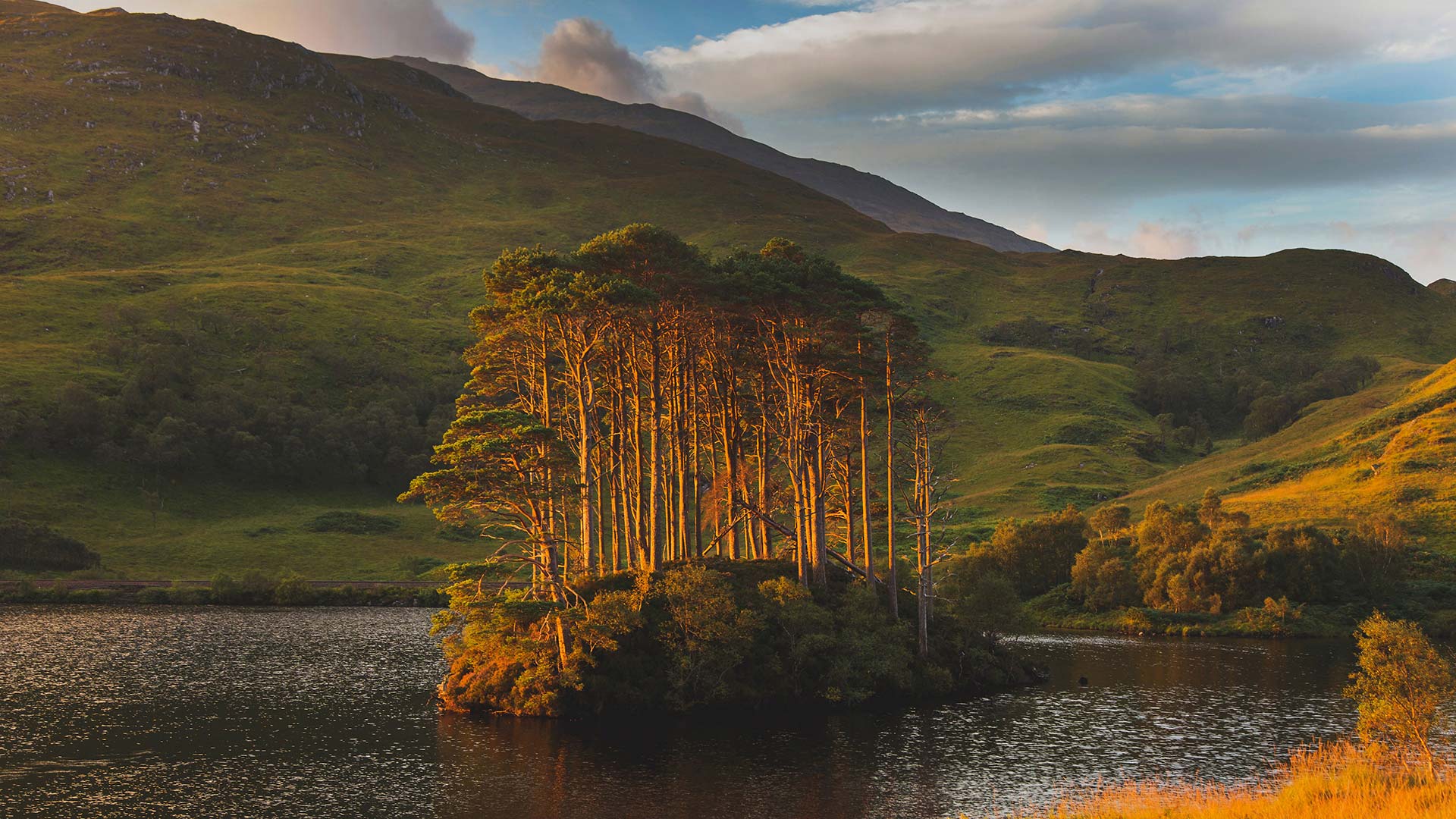 Dawn light on Eilean Na Mòine island, Loch Eilt, Scotland (© Lilly Husbands/Offset) - Bing Wallpaper on April 27, 2022