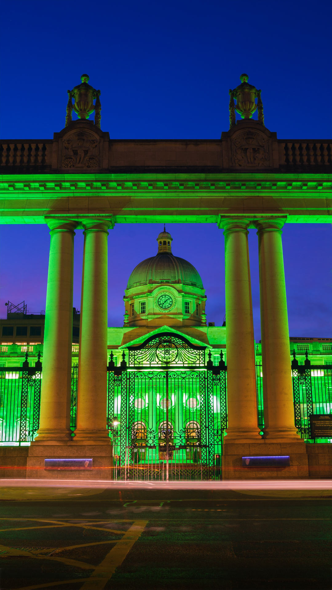 Dublin, Ireland’s Government Buildings lit up for St. Patrick’s Day (© David Soanes Photography/Getty Images) - Bing Wallpaper on March 17, 2019