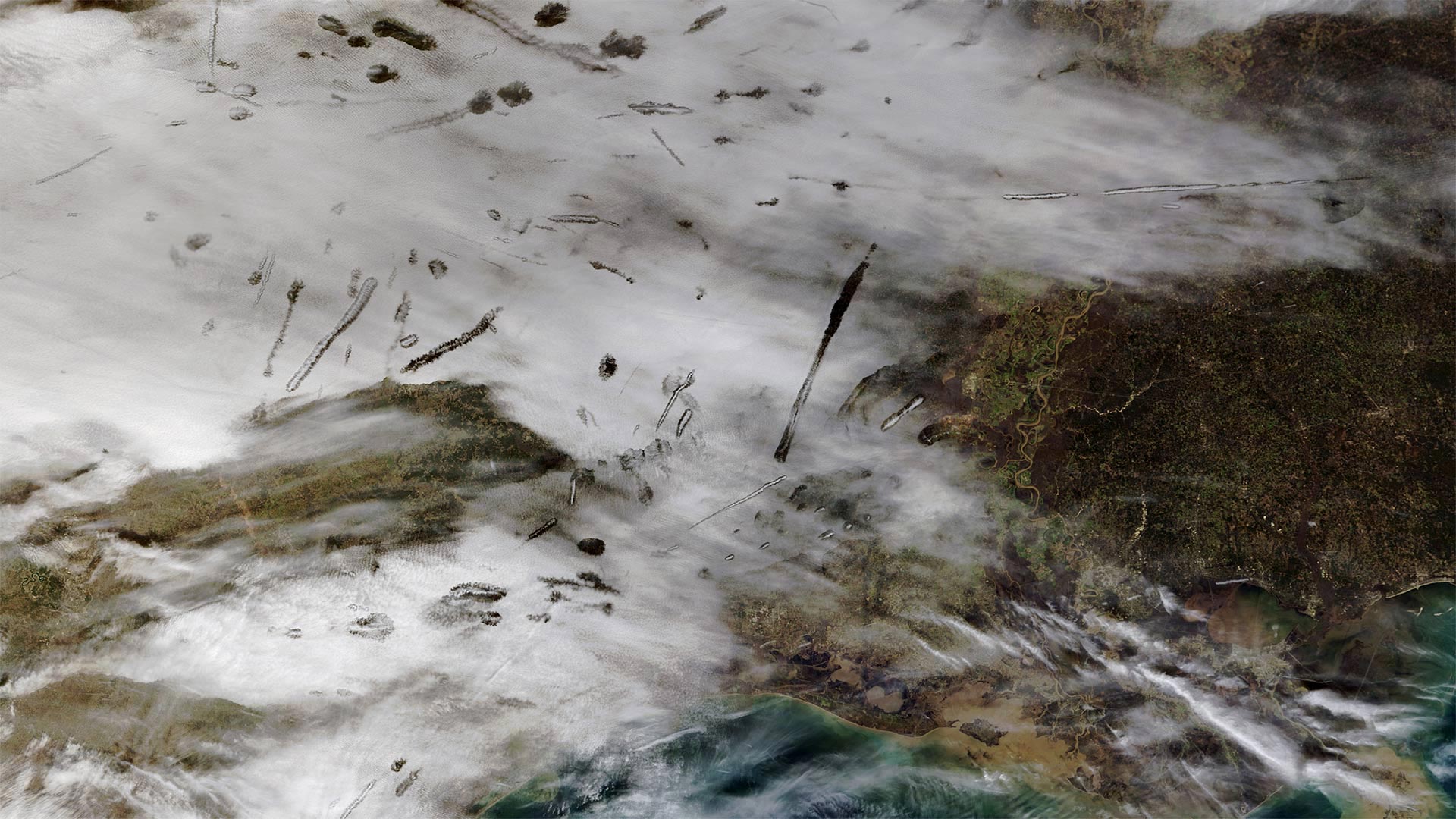 From NASA’s Terra satellite, an image of fallstreak holes in clouds over the southern United States (© NASA) - Bing Wallpaper on March 23, 2019