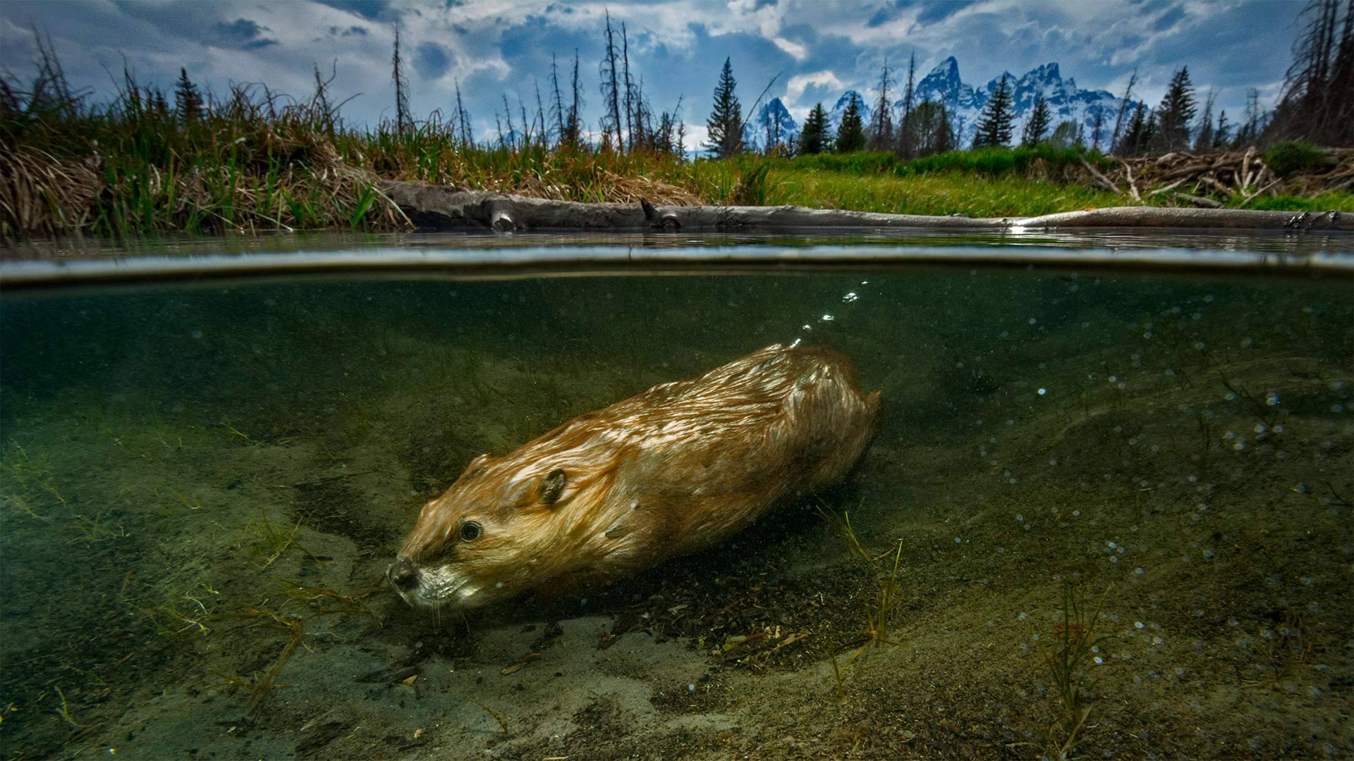For International Beaver Day, a beaver swimming in Grand Teton National Park, Wyoming (© Charlie Hamilton James/Getty Images) - Bing Wallpaper on April 7, 2019